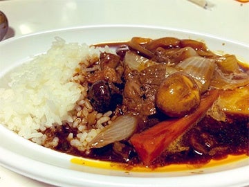 メニュー紹介/山形牛を赤ワイン、トマト、香味野菜と一緒にじっくり煮込みました。旨味の凝縮したルーは、硬めに炊いた雪若丸にとてもよく合います。