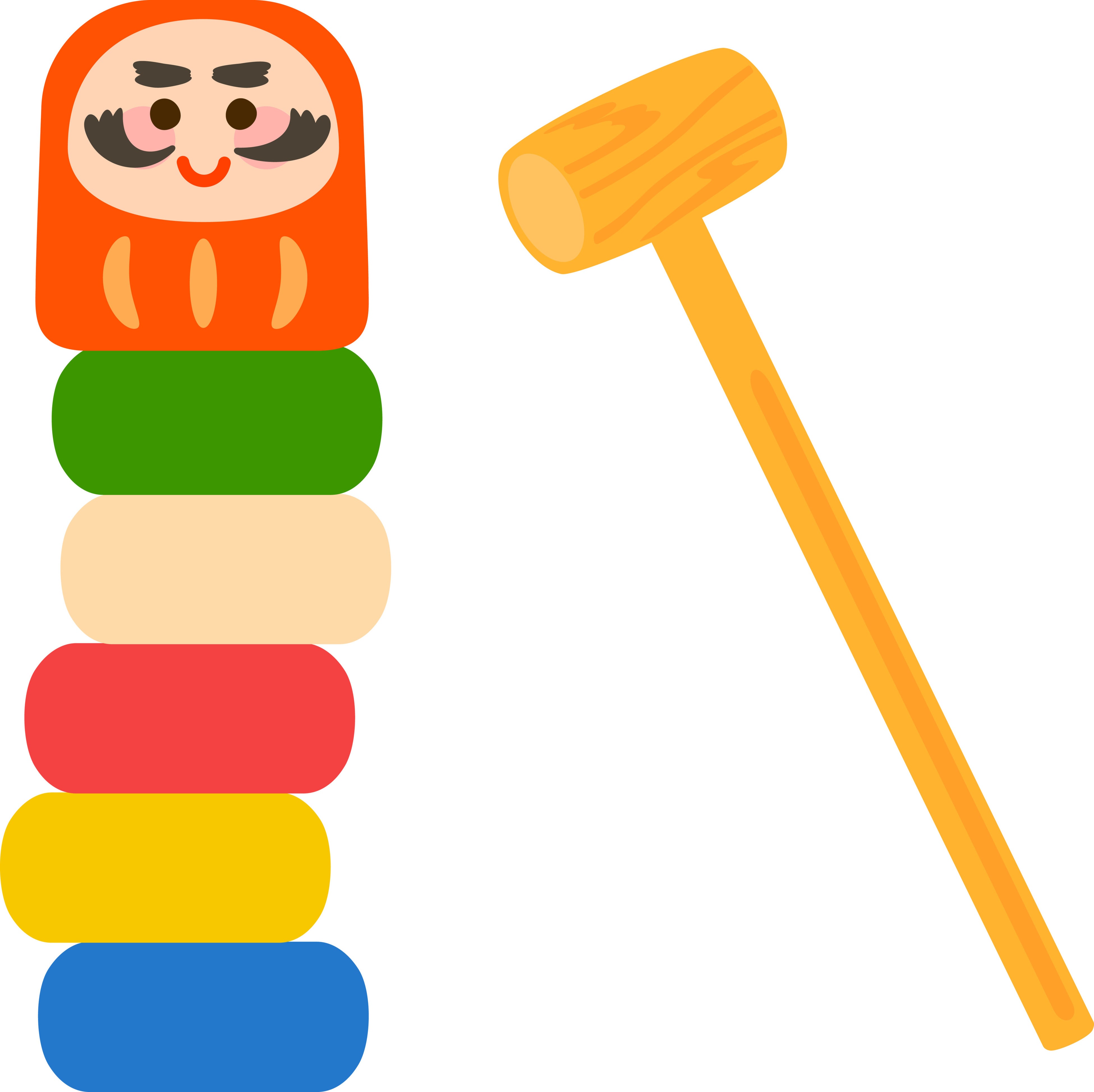 2⼈以上のチームでエントリーを⾏い、交代でハンマーを握るチーム参加型のだるま落とし。