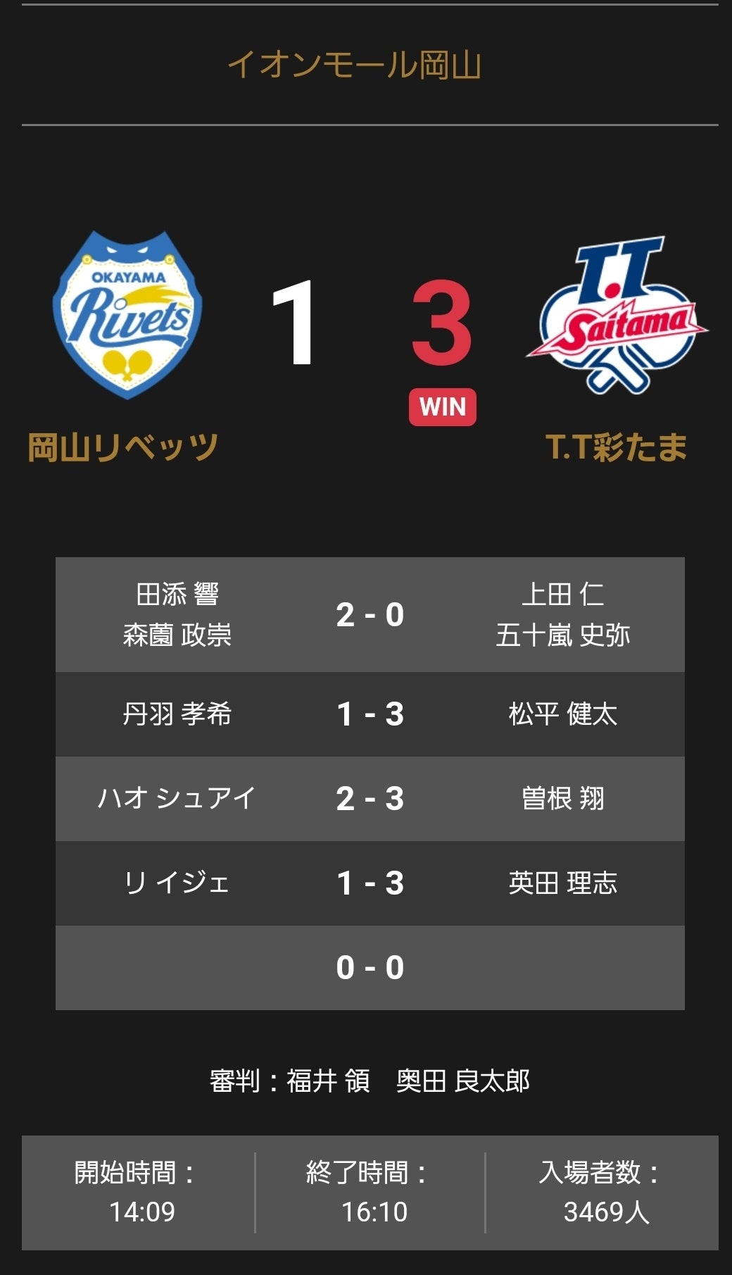 ホームプレスリリース ノジマTリーグ 2022-2023シーズン 公式戦 10月8日開催 岡山リベッツ vs T.T彩たま 試合結果 2022年10月08日 17時08分 公開|スポーツマニア編集部プレスリリース 一般社団法人Tリーグのプレスリリース ノジマTリーグ 2022-2023シーズン 公式戦 10月8日イオンモール岡山 開催 岡山リベッツ vs T.T彩たま 3-1でT.T彩たまが勝利しました