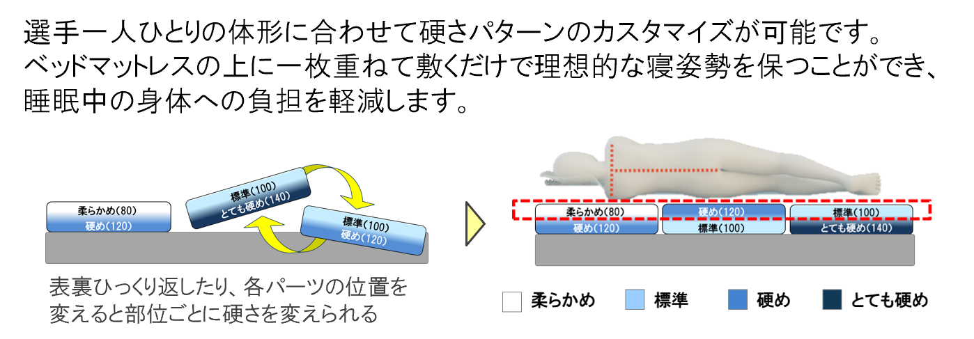 PGA TOURトーナメント「ZOZO CHAMPIONSHIP」は2019年から開催されている世界最高峰のゴルフツアートーナメントです。今年は「日本」を大会のテーマに据え、大会を通じて日本のアイデンティティを表現。世界トップクラスの選手全78名が集結し、国内史上最高額となる賞金をかけて争います。エアウィーヴは出場選手へ、東京2020大会の選手村、北京2022冬季大会の日本代表選手団へ提供した商品と同等の機能を備えた、一人ひとりの体形に合わせてカスタマイズが可能な3分割のマットレスパッドを提供します。大会期間中は体形測定サービス「airweave MattressFit」を用いて、各選手の体形に合わせた硬さパターンをご提案します。出場選手が最大限のパフォーマンスを発揮できるよう、ツアー中の睡眠をサポートします。