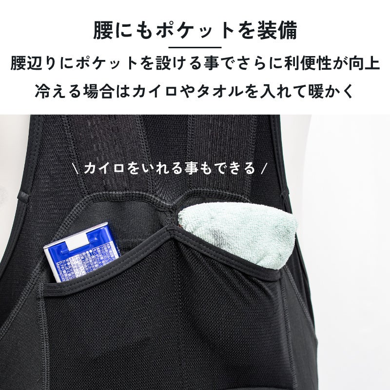 ビブタイプの特徴でウエスト部分に締めつけがないので長時間快適です。