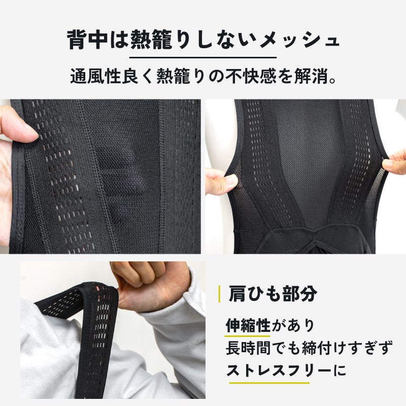 背中部分はメッシュ素材で通気性が向上し、熱籠りで暑苦しい不快感も起こりません。