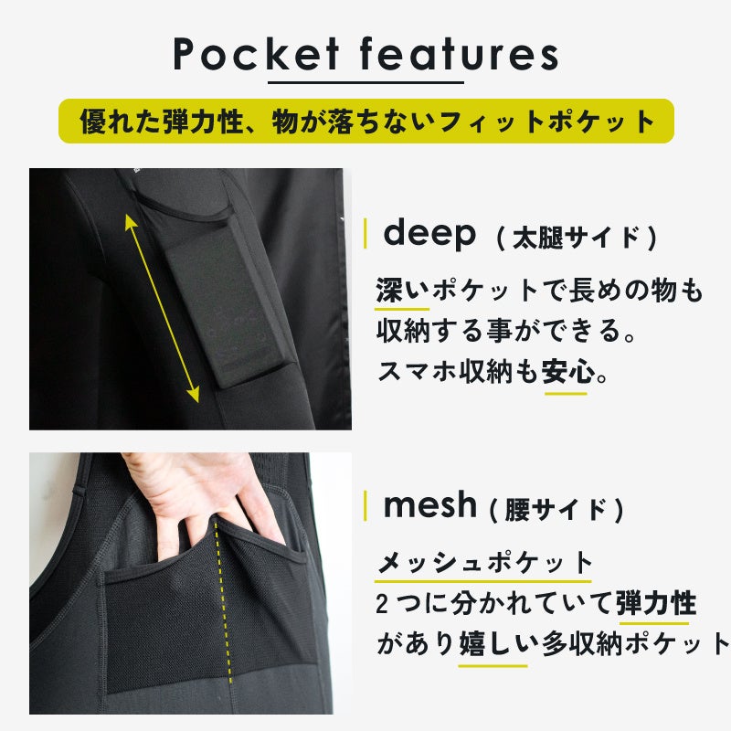 ストレッチ素材で体にフィットするので、ペダリング時もストレス無く長時間使用できます。