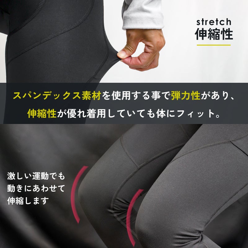 スパンデックスを使用する事で伸縮性(ストレッチ性)がとても優れ、着用していても身体にフィット。