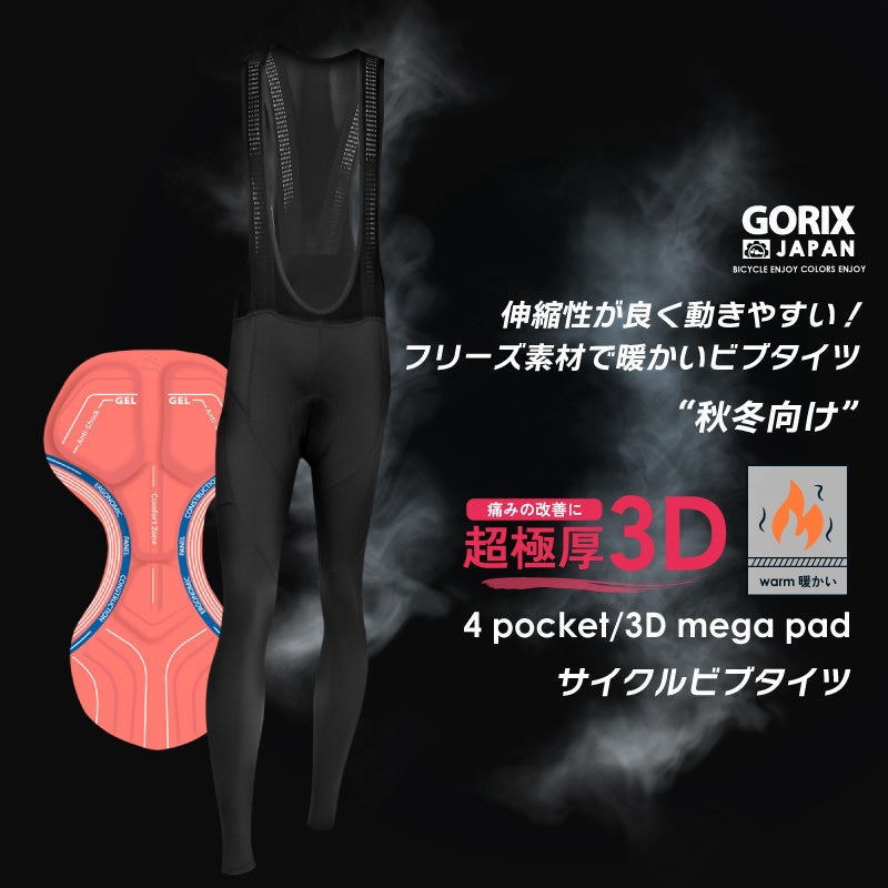 商品名:GORIX 秋冬向けサイクルビブタイツ (GW-BTMega)