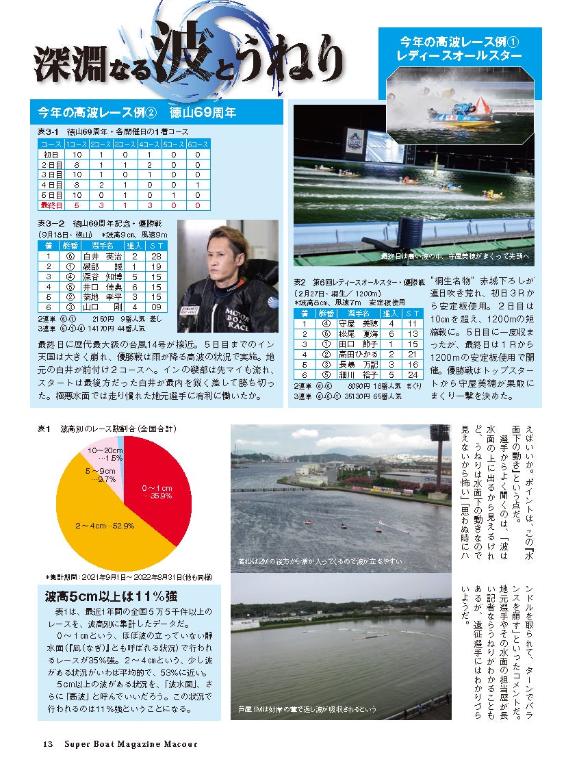 2022年10月11日からは『月刊マクール 2022年11月号』を発売いたします。巻頭インタビューはマスターズでGⅠ初優勝を飾った上平真二選手(広島)となっています。今回のテーマはボートレースの展開を左右する“波とうねり”。 全国24場の波事情やボートレース選手に訊く「波とうねり」対処法は必読です。