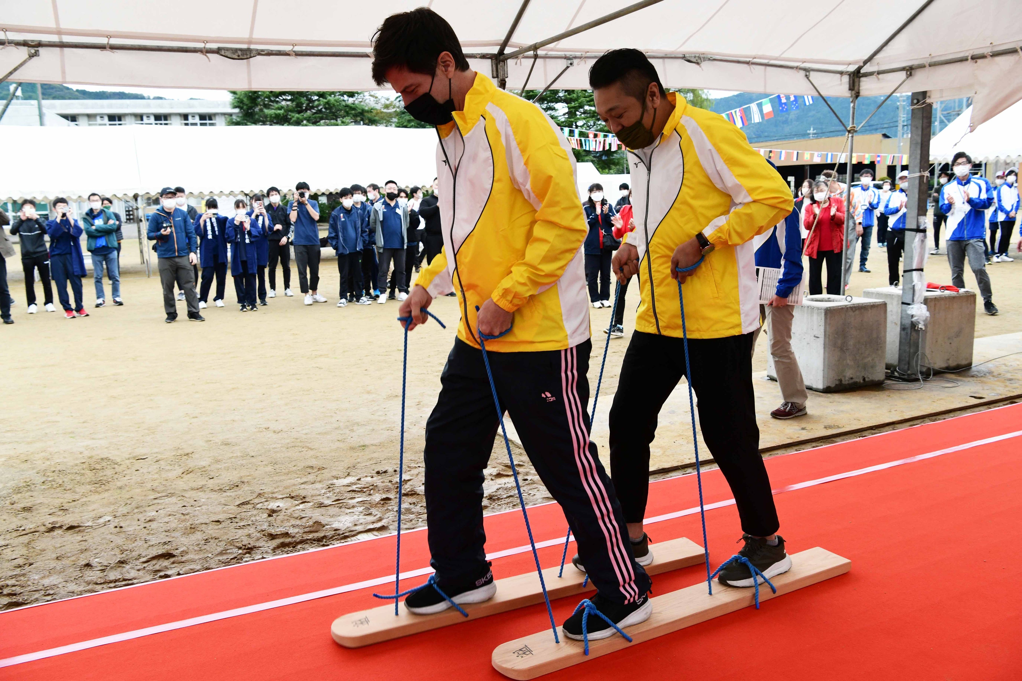 今回はウッドスポーツの3種目の中から、長い木製の下駄を履き直線コースを駆け抜ける「ゲッター」(4人制のの“ゲッタークワッド”、2人制の“ゲッターペア”)の大会です。全国から総勢132名が参加し、杉本町長の挨拶でスタートした選手権は、パックンマックンさんとともに笑顔あふれる白熱した2日間となりました。