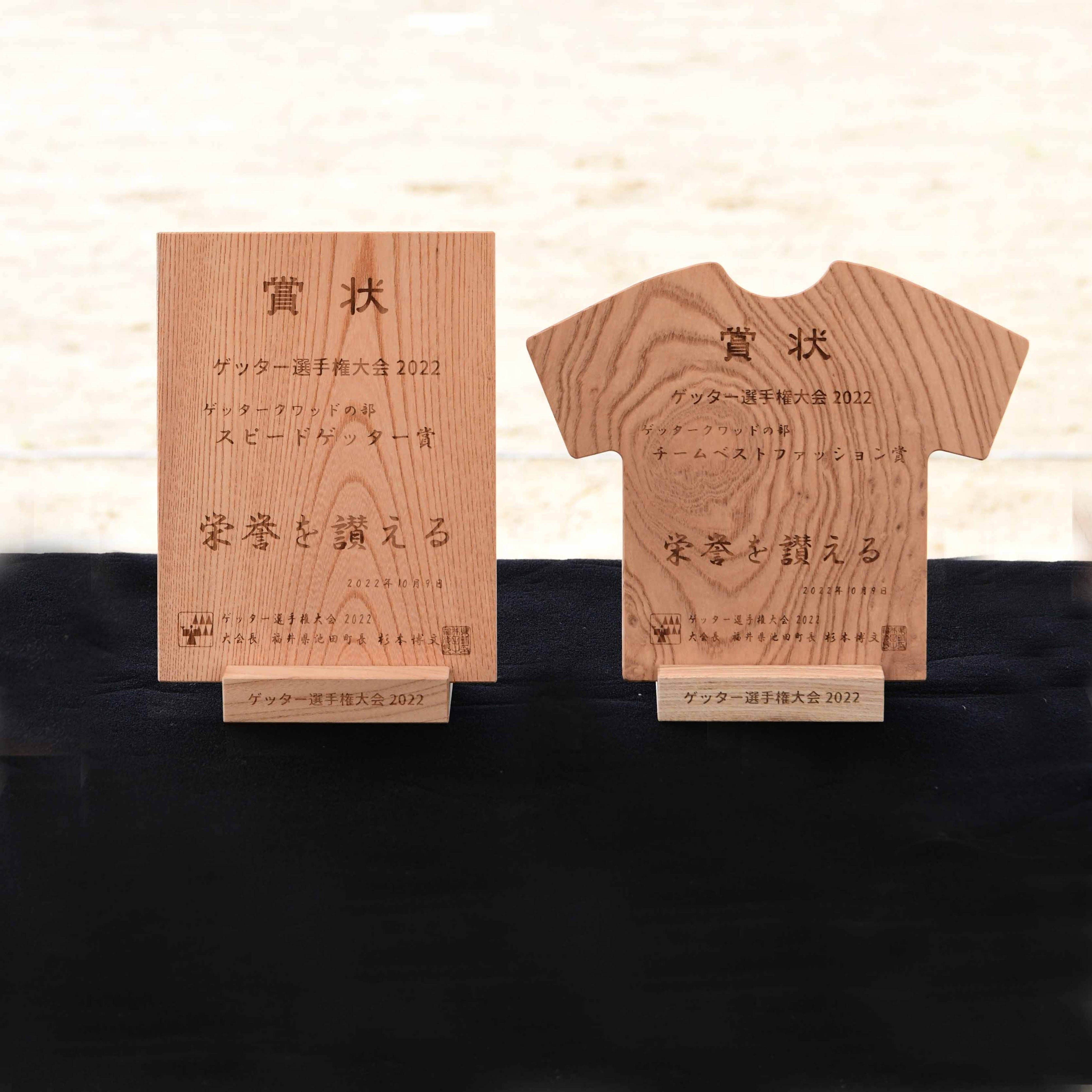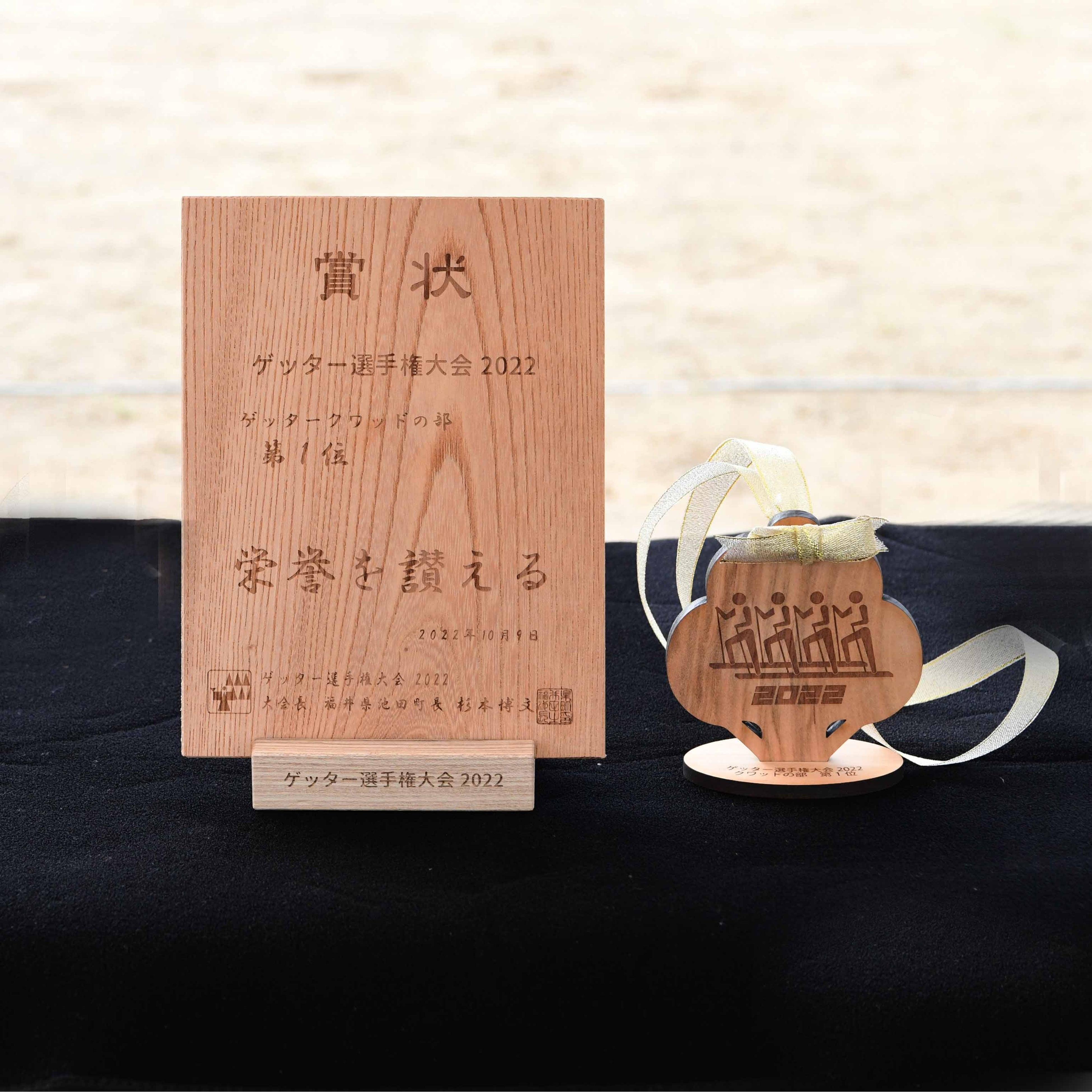 初日開催のレセプションでは、廃校になった小学校をリノベーションした「農村de合宿キャンプセンター」にて、池田町の風土料理を中心とした「池田・食のバイキング」をご用意し、大会参加者と池田町住民との交流を楽しんでいただきました。また、各受賞者には木望の森ならではの「木製」のオリジナルメダルや盾、副賞は池田町特産品が表彰式で授与されました。