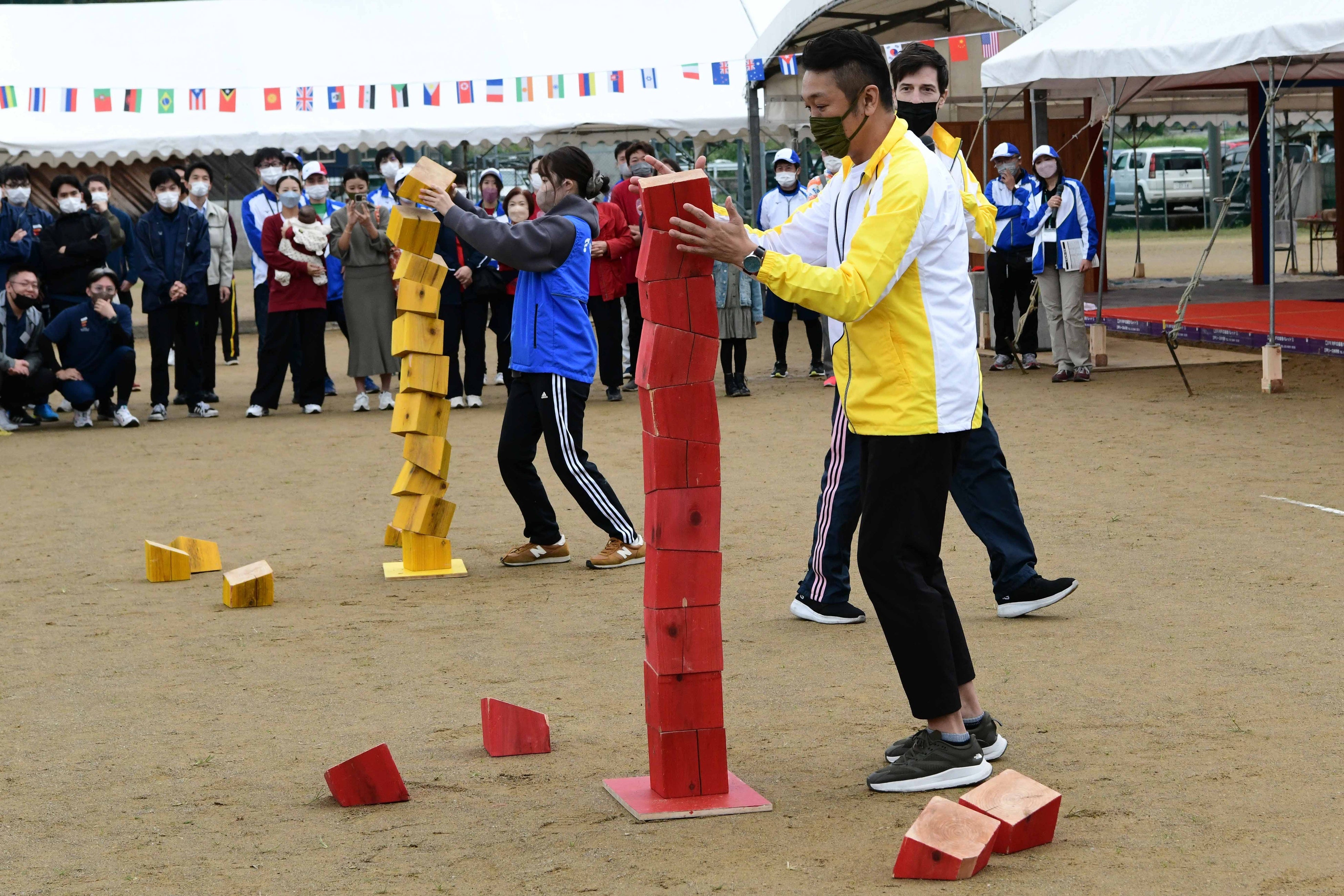 会場があたたかい応援と笑いに包まれる中、ウッドスポーツを体験したパックンマックンさんは「池田町発信のウッドスポーツがもっと広がって、全国いろいろなところから参加してほしいですね !」と参加者と健闘を称えあいました。