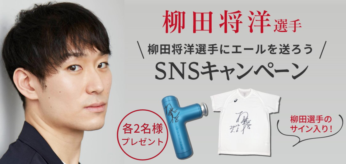 この度、『ドクターエア』ではスペシャルアドバイザーである“柳田将洋選手”を応援するSNSキャンペーンを実施いたします。今年5月、柳田選手は長年所属されていたチームの退団を発表。2022-2023シーズンより新天地にてプレーされます。そこで、今回『ドクターエア』では、新シーズン開幕に向けて、準備を進める柳田選手へのエールをドクターエアSNS公式アカウントで募集!そして柳田選手へのエールを送って頂いた方の中から抽選でサイン入りドクターエア製品やサイン入りTシャツをプレゼントするキャンペーンを開催いたします!