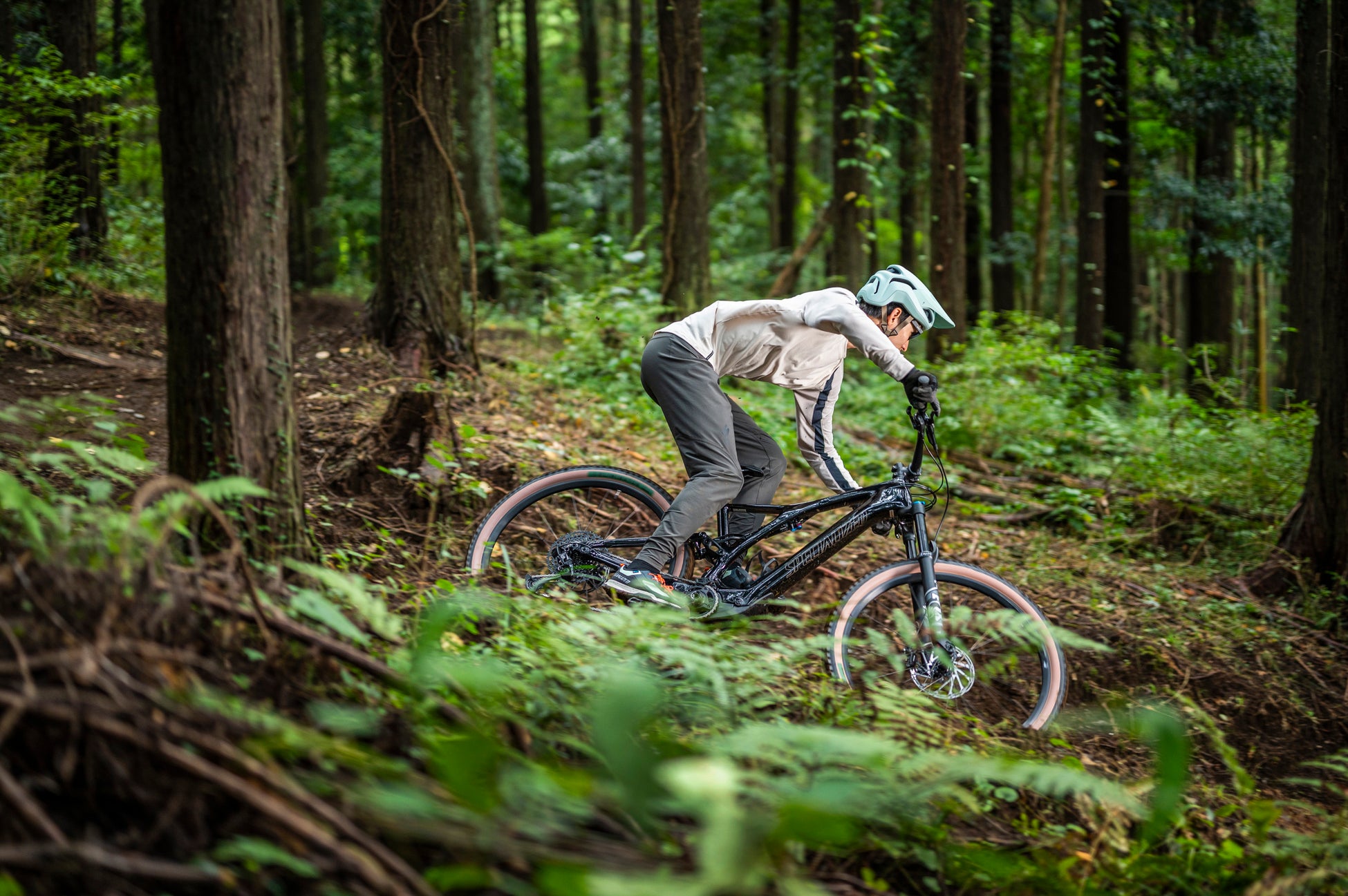 Turbo Levo SL(ターボ・リーヴォ・エスエル)は、S-Worksグレードで17.35kg、アルミモデルでも19.5kgと圧倒的な軽量性が特長のe-MTB。今までのトレイルバイクと遜色のない操作性を持ったまま、モーターのアシストで坂道を軽々と上ることができます。