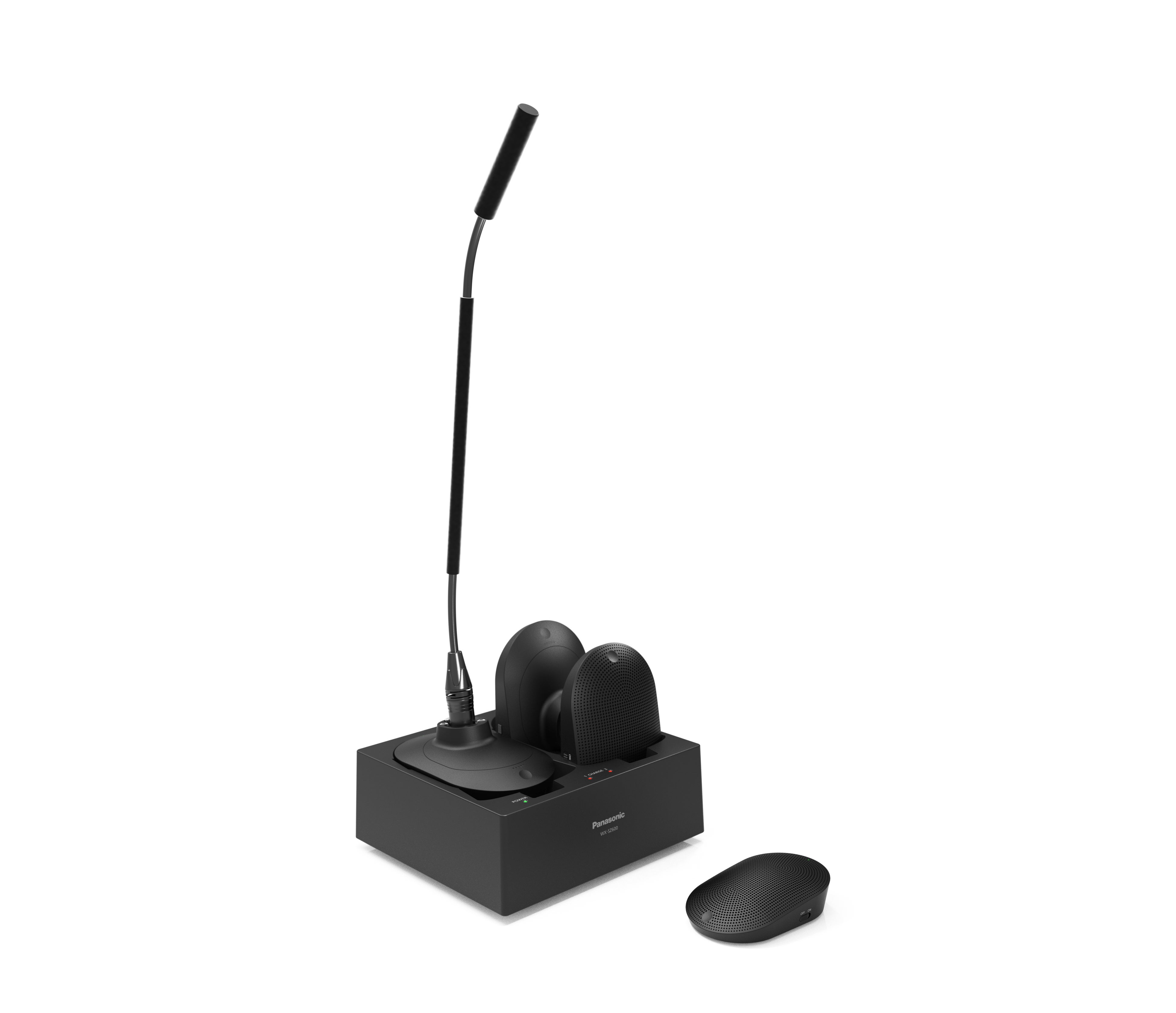 ・概要:明瞭で確実な音声伝達が求められる、役員会議や学会などの大規模カンファレンスで使用されるマイクシステム。音波回折の低減と、収音性向上のため曲面基調の形状を本体に採用。非接触式の充電台により接点不良の問題を解消、縦置収納で省スペース化を実現。昨今の対面とリモートが混在する会議での適切な音声環境づくりを目指した。