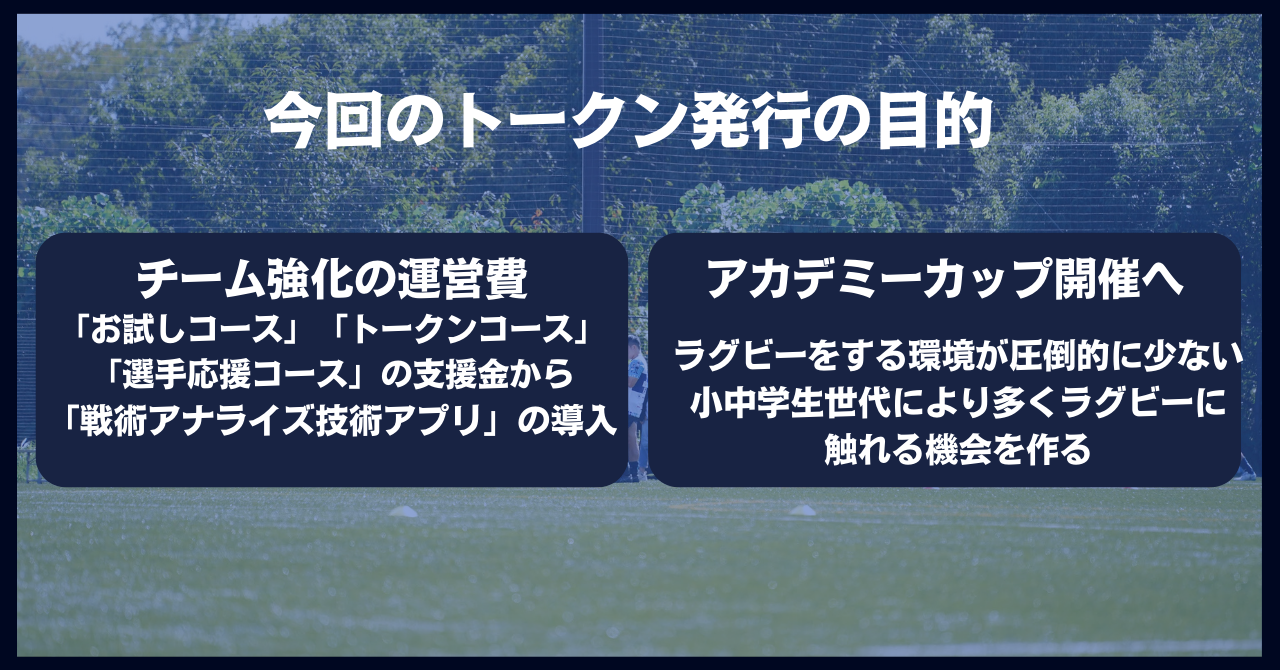 BIG BLUESは、ラグビー界の以下の2点の目的のためにトークンの発行をいたします