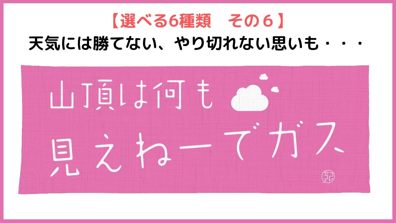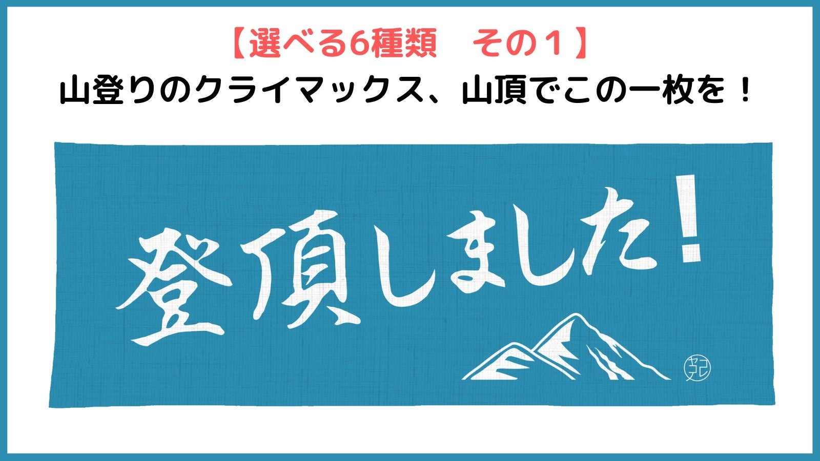 それでは、登山のよろこびや苦労の思いを込めた、6種類のメッセージ手ぬぐいをご紹介してまいります。