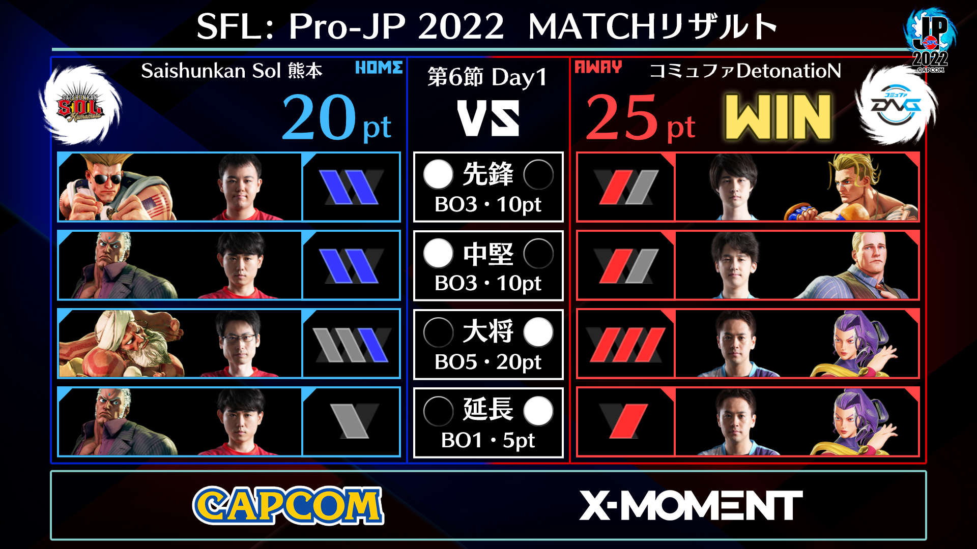 先週、10月14日(金)に行われた「ストリートファイターリーグ: Pro-JP 2022」第6節Day1の試合速報をお知らせいたします。
