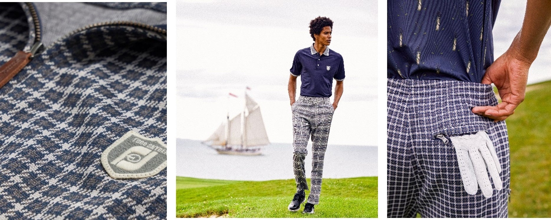 秋冬らしい深みのあるグレーを基調に、ヴィンテージ風のディテール、レトロなパターン、ウッディな仕上げなど、カントリークラブの定番ヴィンテージとパフォーマンス志向のファブリックが、秋のゴルフはもちろん、コース外でも、目を惹くことができるコレクションとなっています。