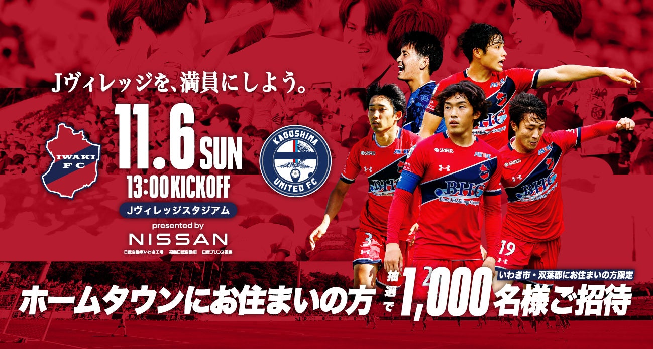 【11/6(日) 鹿児島ユナイテッドFC戦】ホームタウンにお住まいの方抽選で1,000名を無料ご招待!