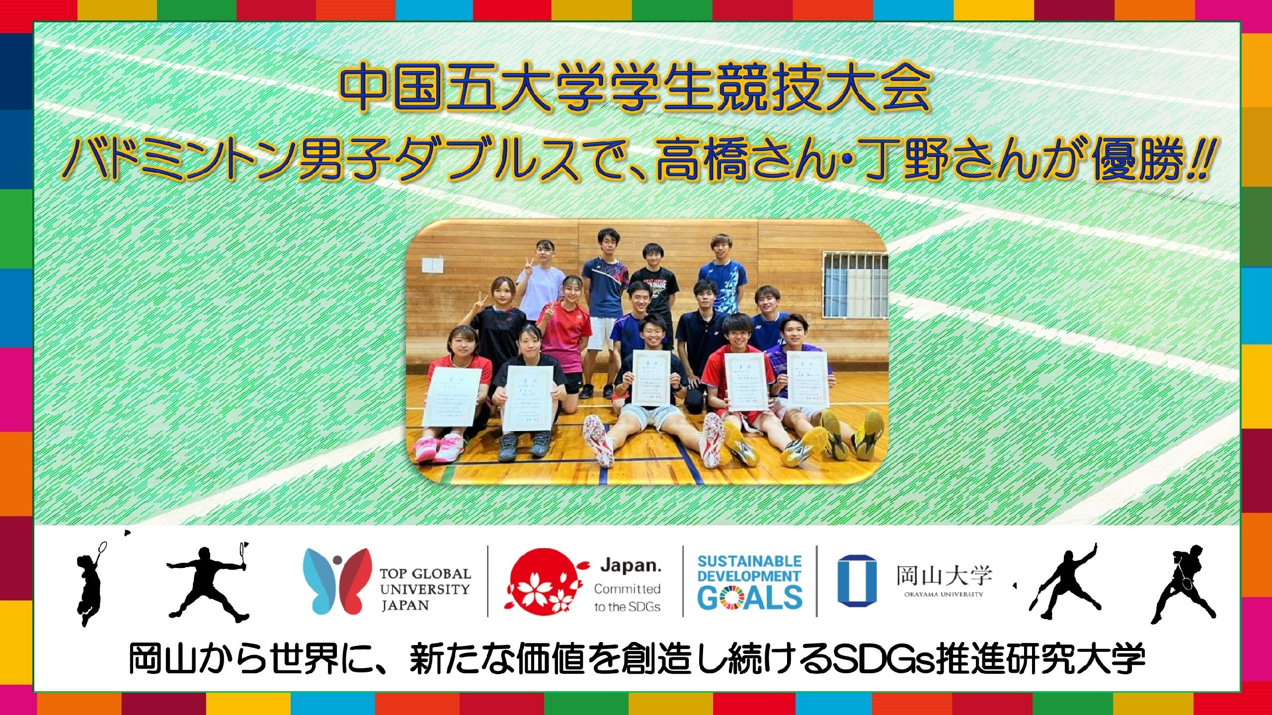 第73回中国五大学学生競技大会のバドミントン競技が、岡山大学を主管校とし、2022年9月15日、16日に岡山大学清水体育館・第二体育館(岡山市北区)で開催されました。