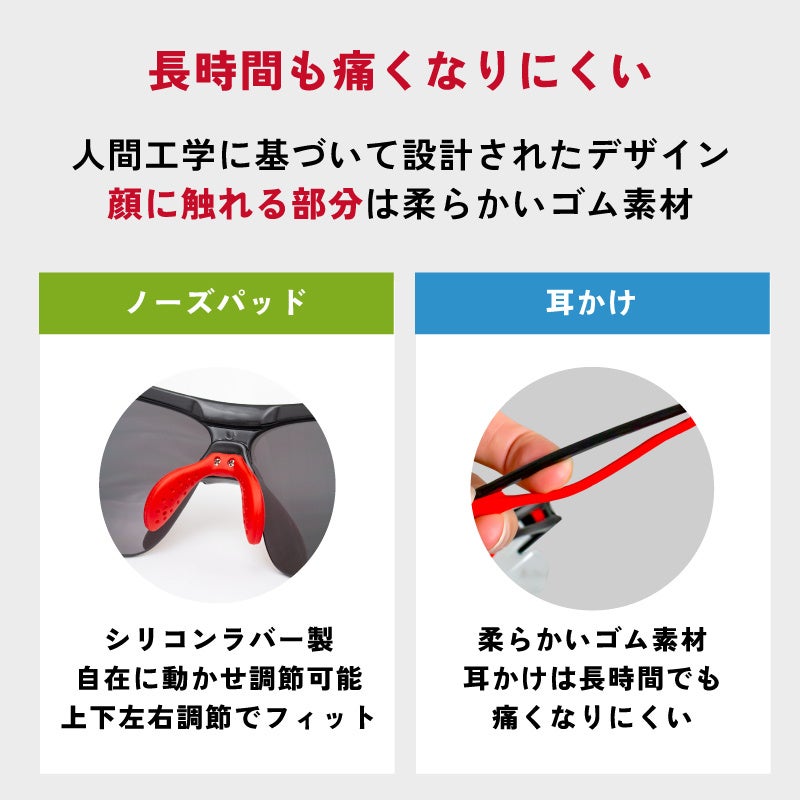 仕様 UV400紫外線カット、調整可能の鼻当て