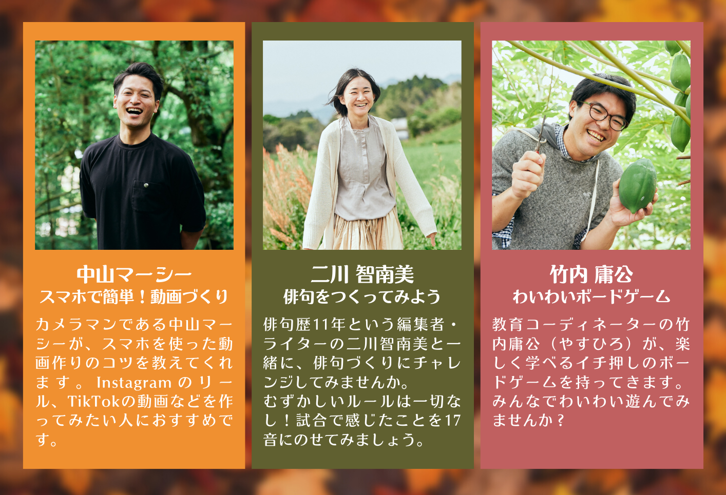 新富町地域おこし協力隊には、ヴィアマテラス宮崎以外で活動する隊員も7名おり、このうちの3名が、10月23日(日)のヴィアマテラス宮崎ホーム戦にて、得意分野を活かした体験型ワークショップを開催することになりました。