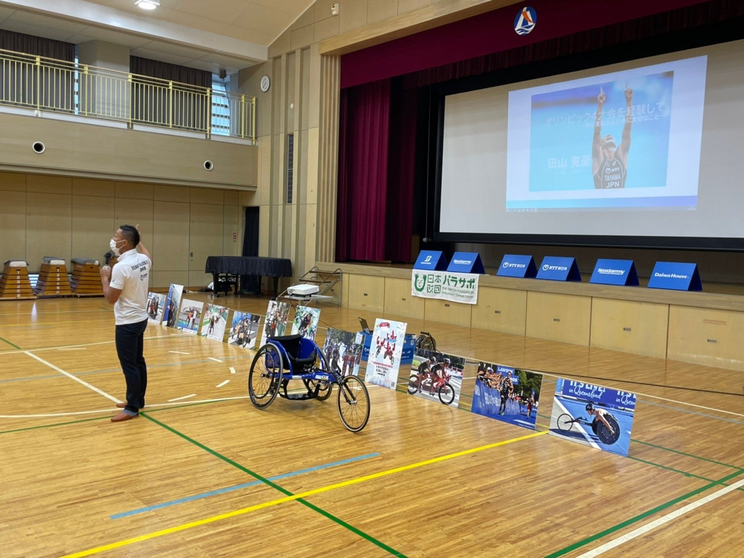 さらに、社会貢献活動の一環として、豪華オリンピアン2名による「トライアスロン・パラトライアスロン普及教育授業」を開催地域小学校にて行い、子供たちとオリンピアンとの交流により、トライアスロン競技の認識を深めることを目的としています。また、パラトライアスロン体験機会を設けることで様々な障がいへの理解を深め、「ダイバーシティ&インクルージョン」社会について考えるきっかけになればと企図しています。