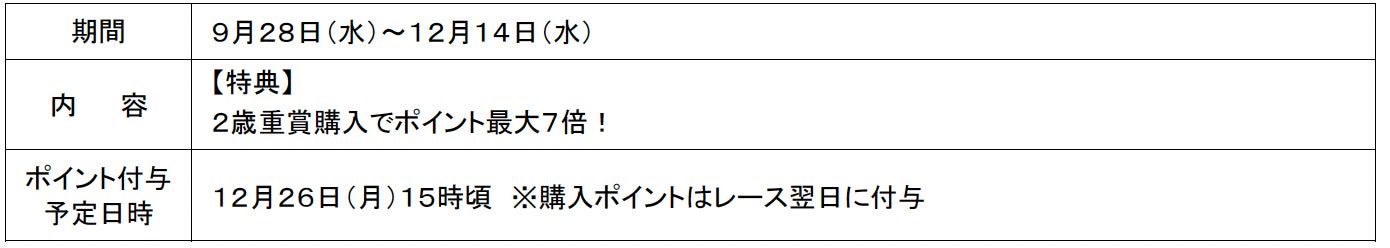 未確定馬券200円以上で抽選会に参加できます。