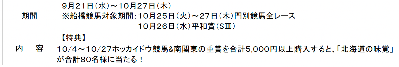 参加条件:当日に購入した船橋競馬の未確定馬券200円以上