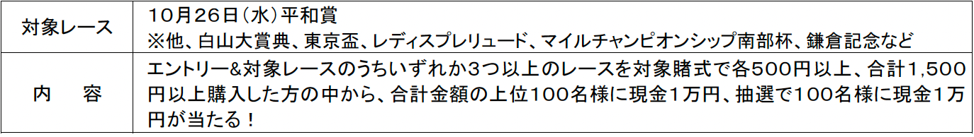 未確定馬券200円以上で抽選会に参加できます。