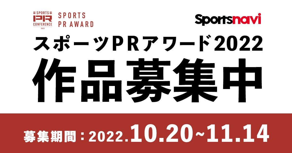 このたびスポーツナビでは、「スポーツPRアワード2022」を開催することが決定いたしました。つきましては、スポーツ関連団体(詳細は後述)の皆様より、2022年に実施したPR施策(広報、マーケティング含む)を募集いたします。
