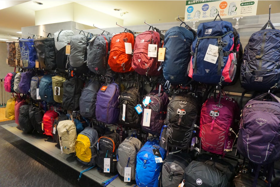 取扱ブランド:コロンビア、マムート、フォックスファイヤー、グレゴリー、ミレー、カリマー、シリオなど