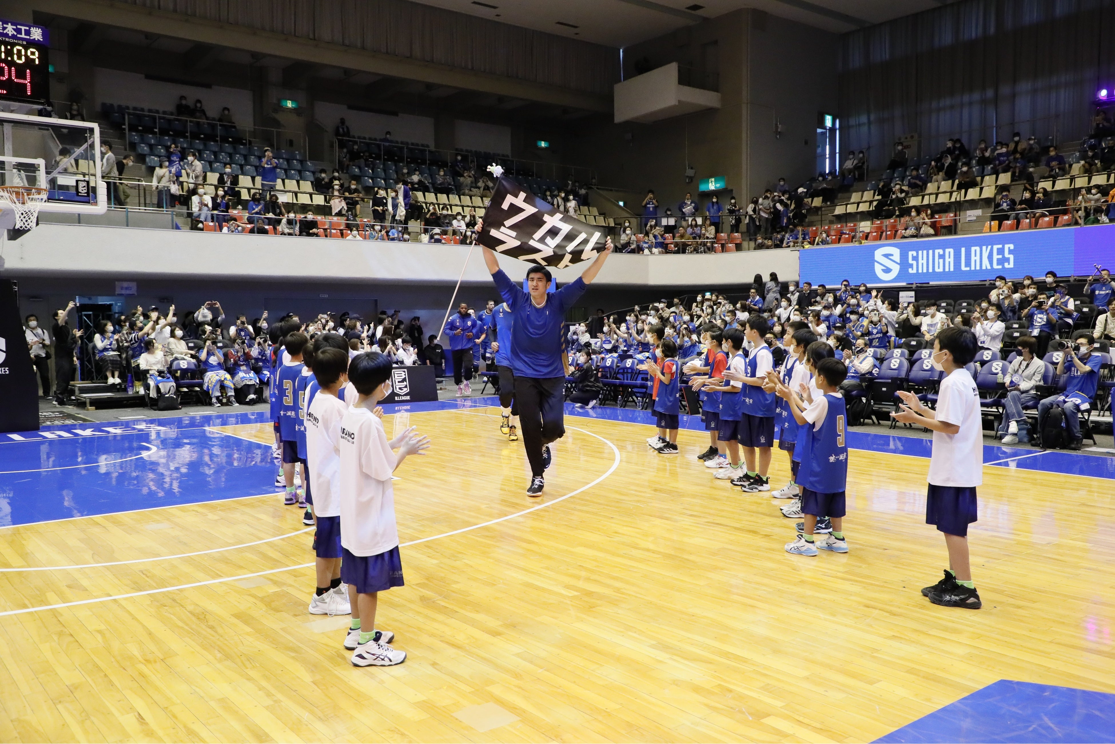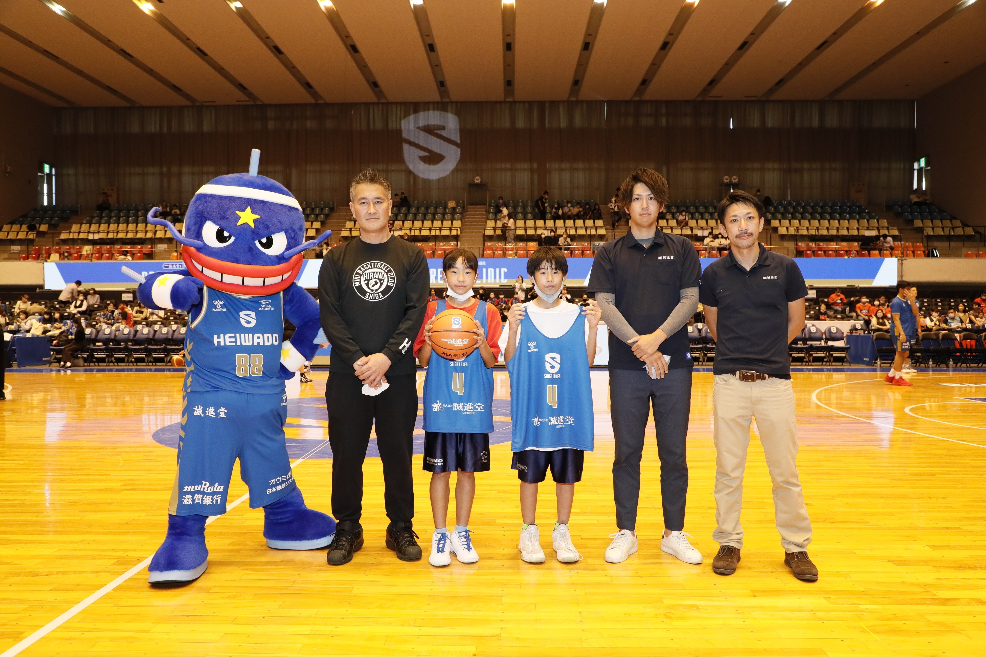 ドリームクリニックに参加した平野ミニバスケットボールクラブには、オリジナルビブス10枚、公式球3球が贈呈され、クリニックを終えた後の子どもたちには、その後に同じコートで行われた「B1リーグ第3節 滋賀レイクスvs広島ドラゴンフライズ」の試合を1階席で観戦してもらいました。