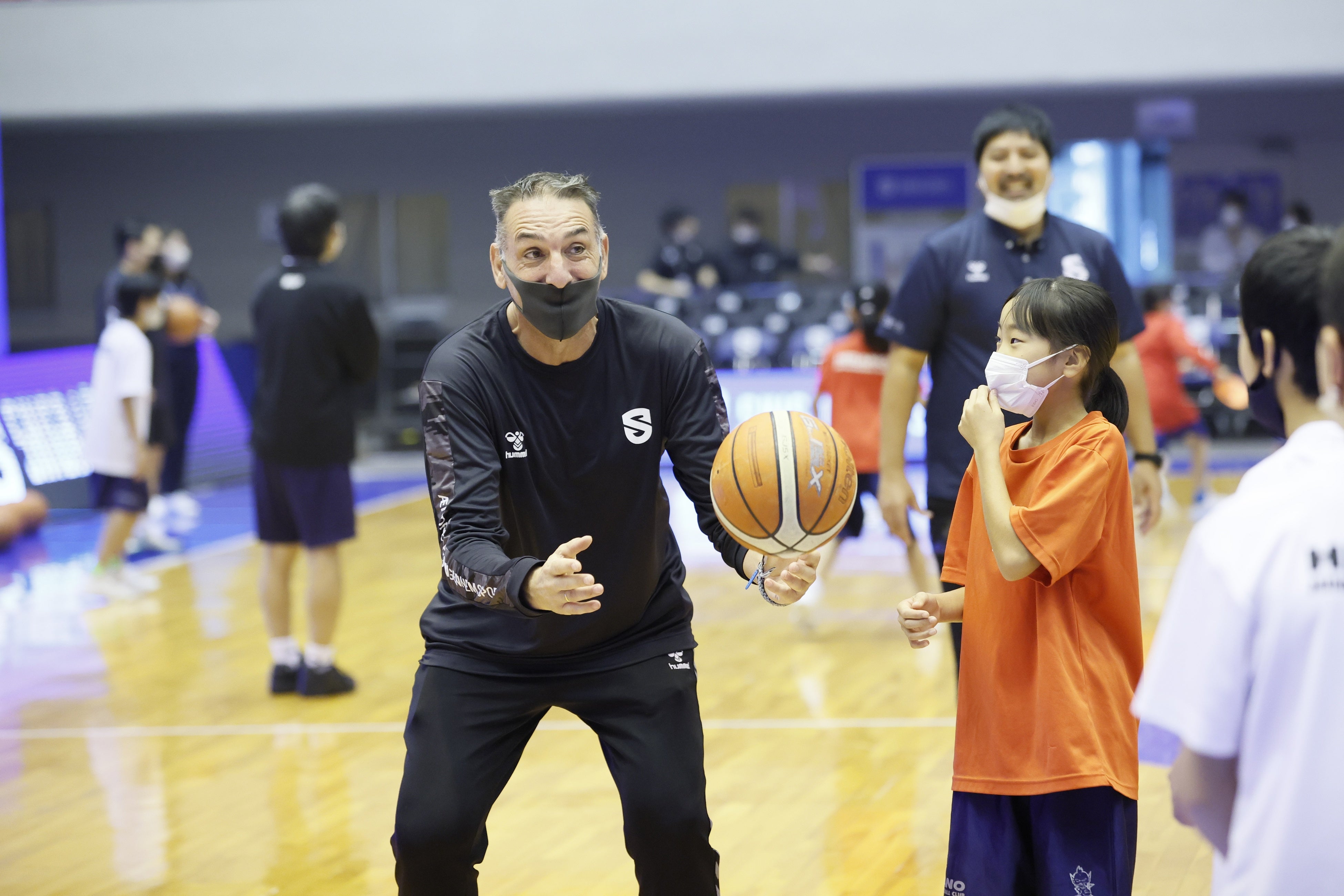 「レイクスドリームクリニック」はバスケを本気で取り組むミニバスケットボールクラブのこどもたちにとって、憧れのプロ選手と同じ舞台での最高の1日を体験してもらう企画です。練習内容は滋賀レイクスのヘッドコーチ(HC)であり、世界ランキング2位のスペイン代表のアシスタントコーチを兼任するルイス・ギルHCが監修し、初回はギルHC自らが約1時間にわたり直接指導を行いました。