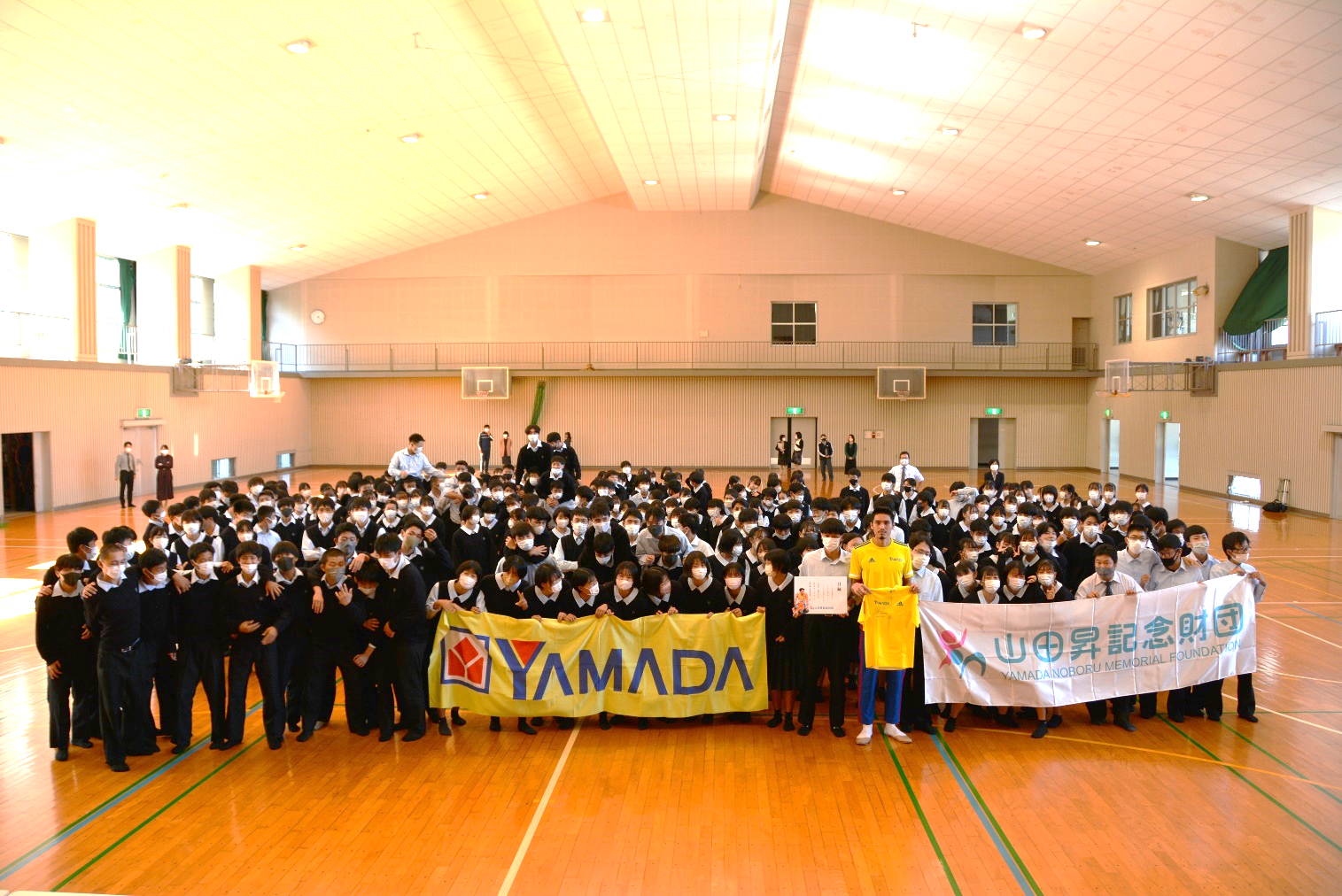 子どもの将来が生まれ育った環境に左右されることのなく、健やかな成長への一助となることを目的として、学校での部活動や様々なトレーニングシーンで活用できる基礎トレーニング用品を安部氏と山田昇記念財団がともに選定し、サイン入り目録を添えて贈呈しました。