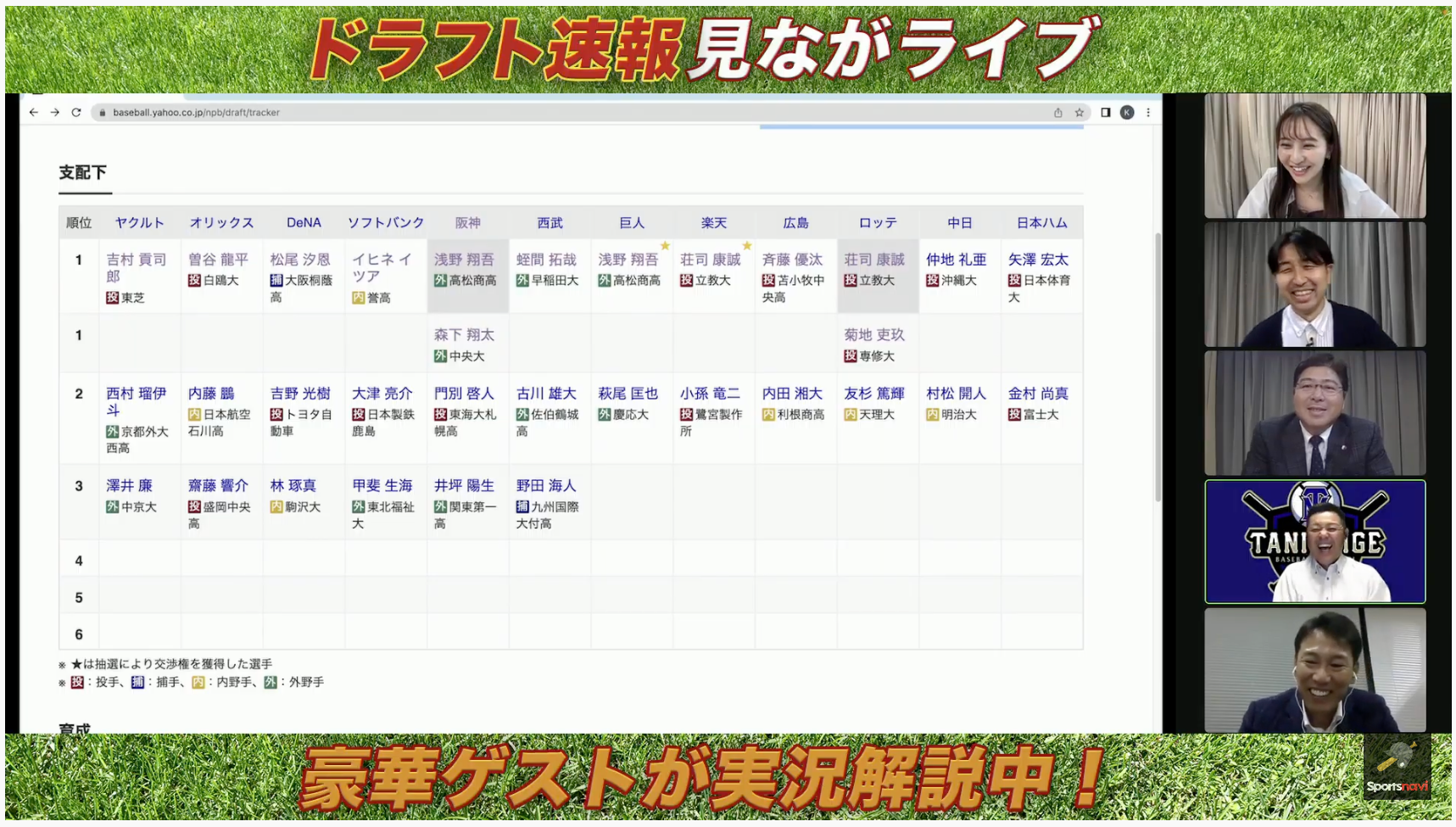 【スポナビ ドラフト速報見ながライブ配信概要】