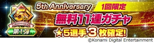 株式会社コナミデジタルエンタテインメントは、モバイルゲーム『eFootball™ ウイコレ CHAMPION SQUADS』(以下、『ウイコレ』)が配信開始5周年を記念した”5th Anniversary FEST”を開始したことをお知らせします。