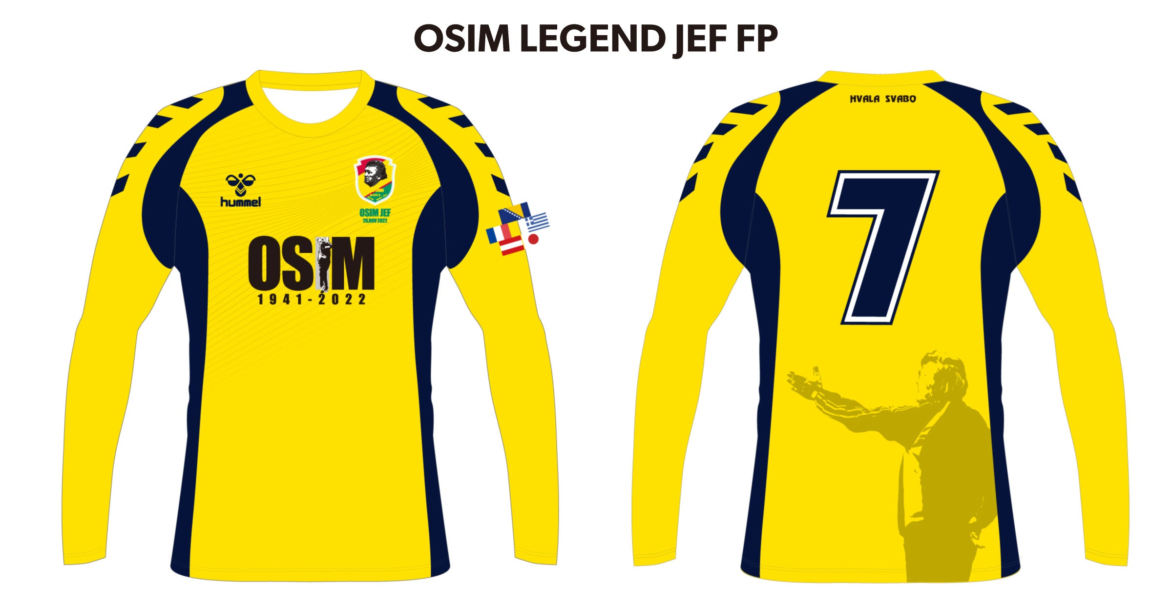 11月20日にフクダ電子アリーナで行われる試合で、ヒュンメルはオシムジェフ、オシムジャパンのユニフォームを担当。当時のカラーやデザイン、ジェフフォントをベースにしながら、イビチャ・オシム元監督をしのんだロゴやエンブレム、左袖にはオシム元監督がサッカーで関わった国の国旗を配置。背面襟下には、「HVALA SVABO」(ありがとう、ドイツ野郎)とプリント。父方の祖父母がドイツ系だったことから、シュワーボ(ドイツ野郎)という愛称で親しまれたオシム元監督への感謝を込めた言葉を刻みました。