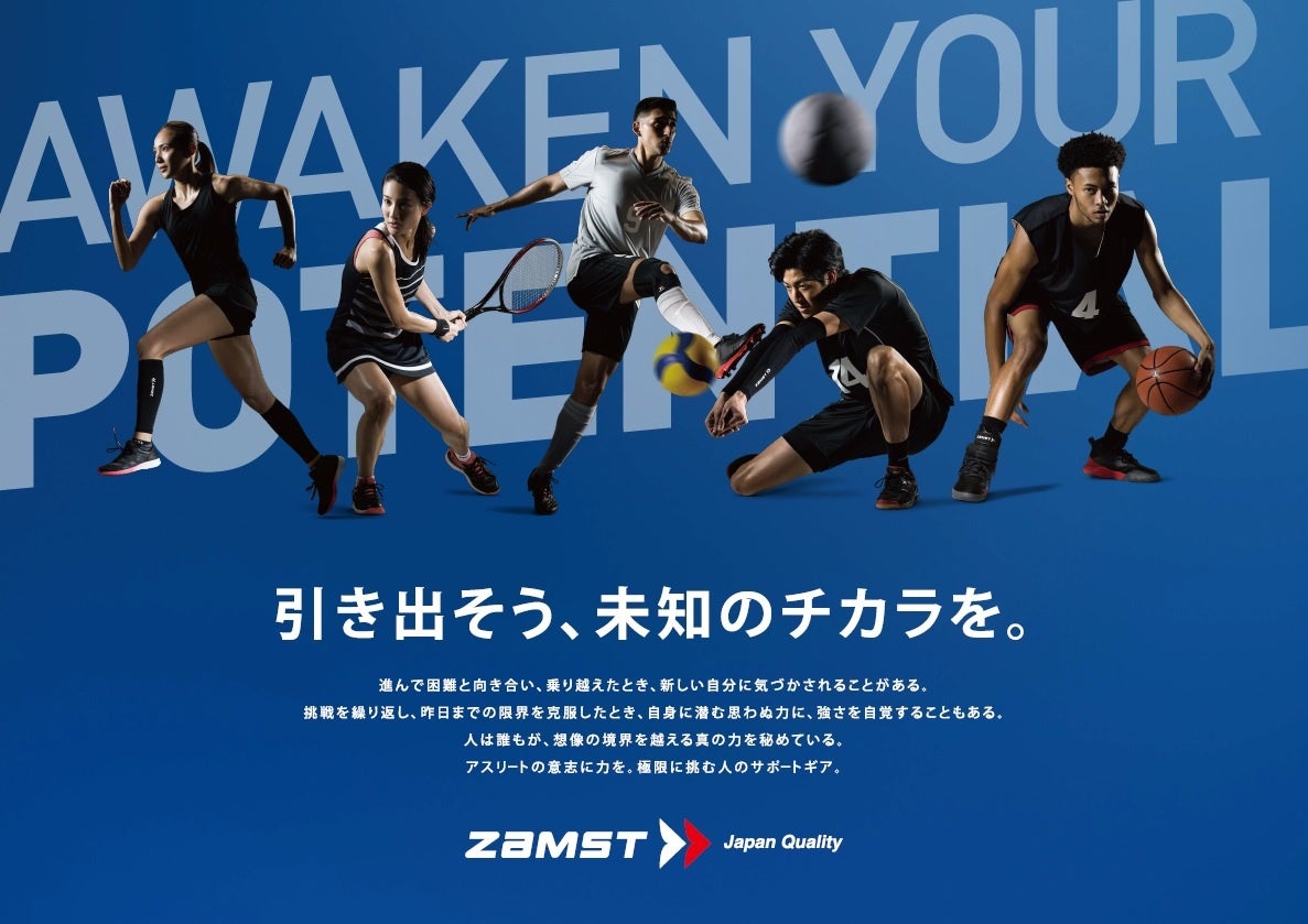 ZAMSTのブランドメッセージである“AWAKEN YOUR POTENTIAL(引き出そう、未知のチカラを)”には、様々な環境下において、全力でスポーツ活動に向き合っているアスリートの皆様に対し、ZAMST製品の使用やサービス活動、サポート活動を通じ、アスリートの皆様の力を100%引き出せるブランドであり続けたいという想いが込められています。
