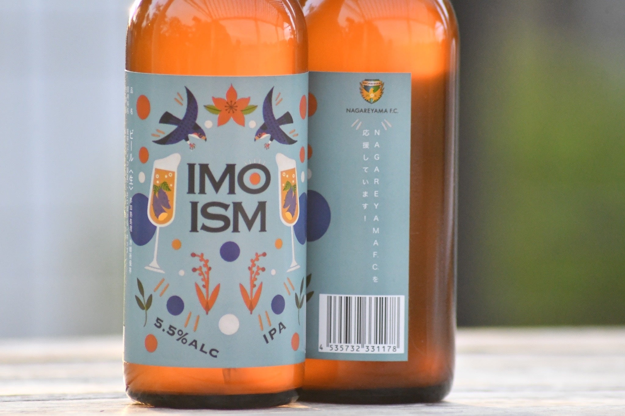 さつまいもの加工・製造する株式会社芋國屋は、さつまいもで作るクラフトビール「IMO ISM」を発売。千葉県流山市を拠点に活動する社会人サッカークラブ 、NAGAREYAMA F.C.のエンブレム入り応援ラベルを使用。