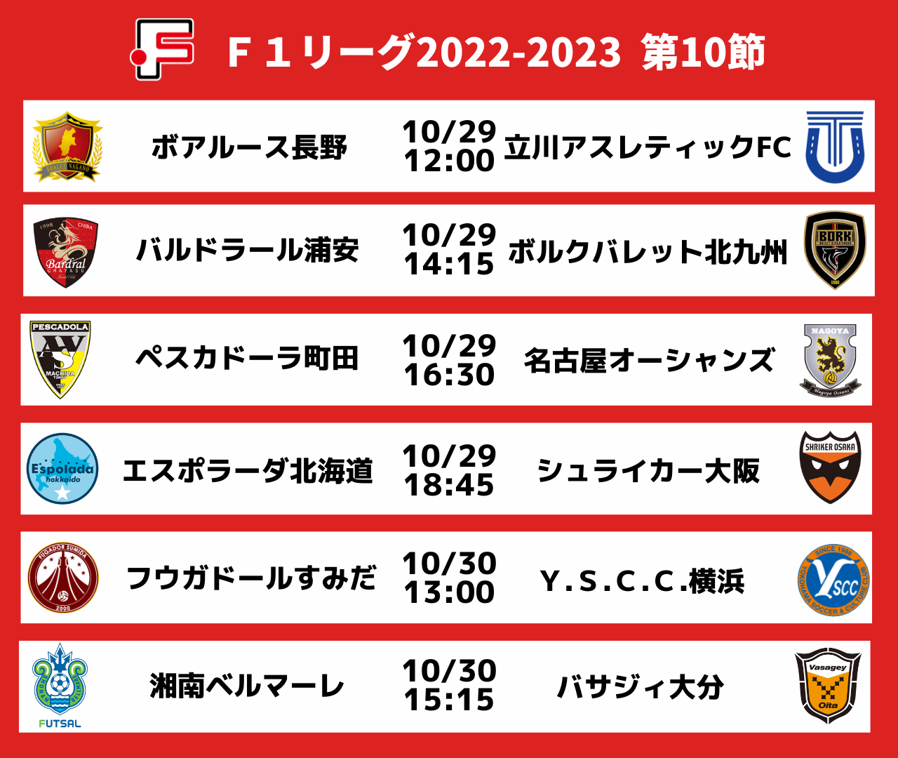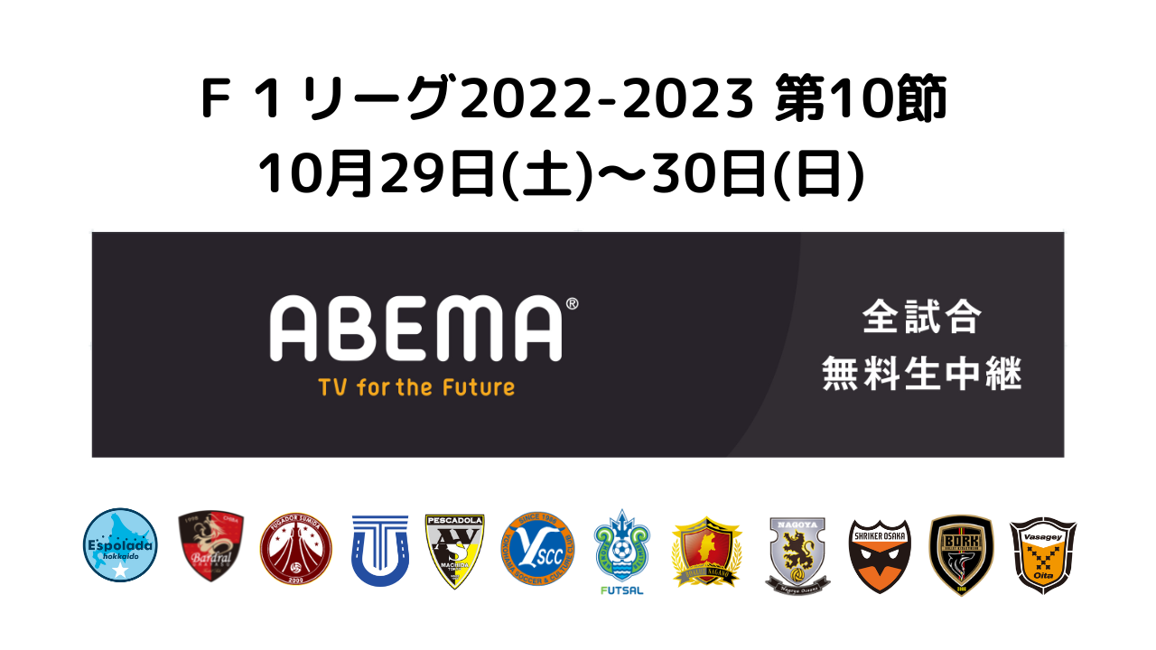 10月29日(土)、30日(日)にFリーグ2022-2023 ディビジョン1 第10節の6試合を開催いたします。