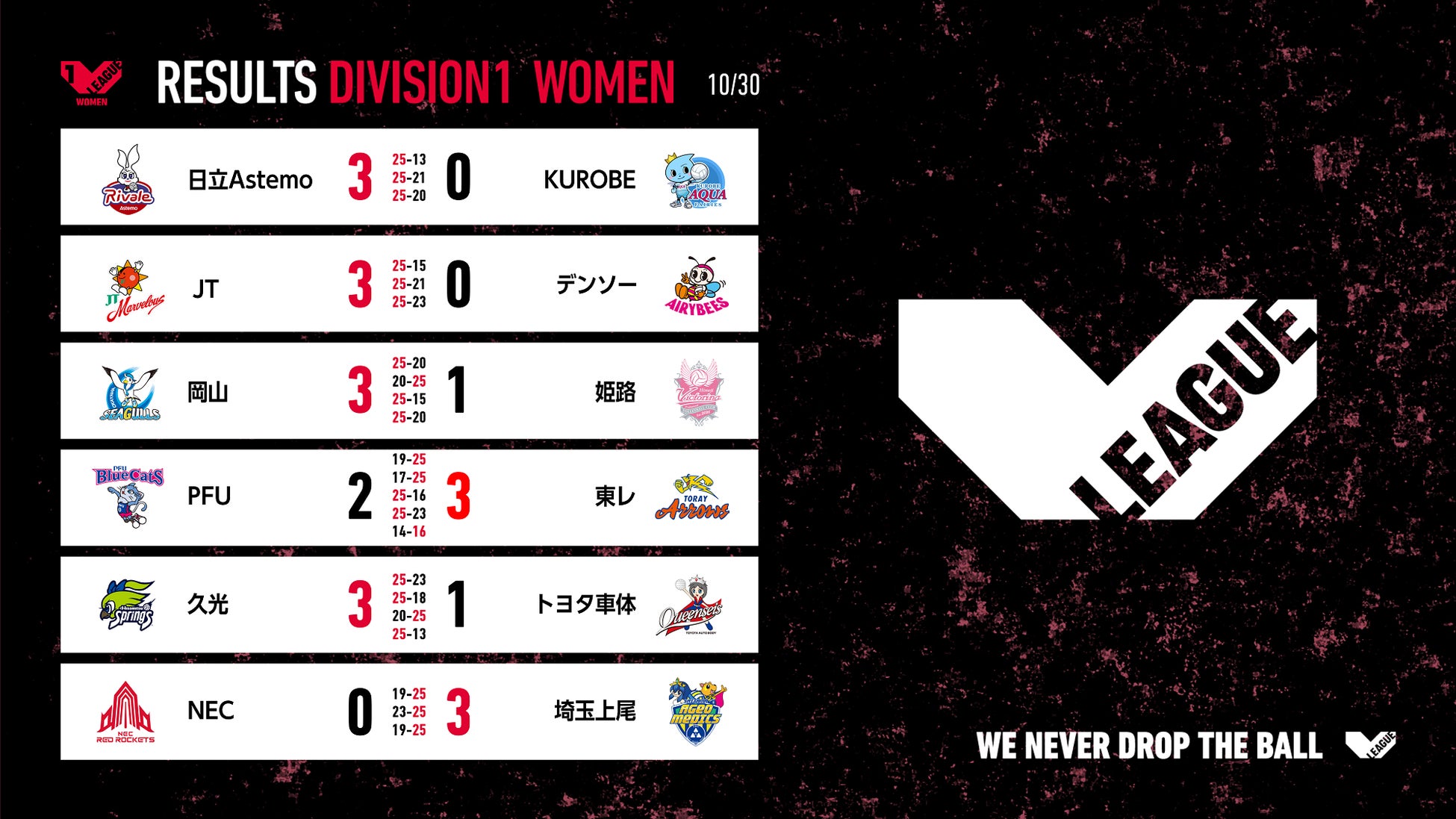 バレーボール国内最高峰リーグ V.LEAGUE【10月30日の試合結果】