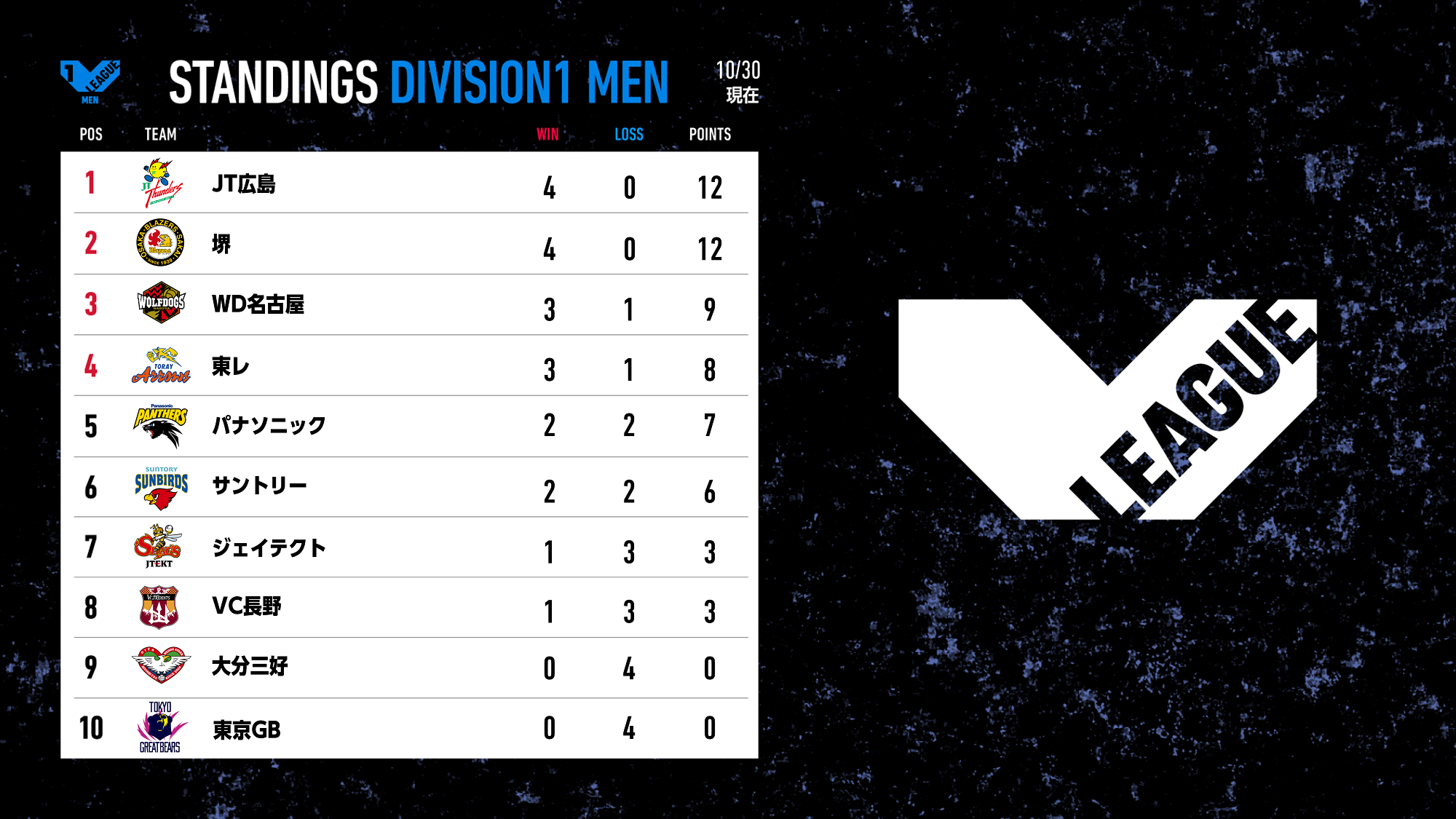 バレーボール国内最高峰リーグ V.LEAGUE【10月30日の試合結果】