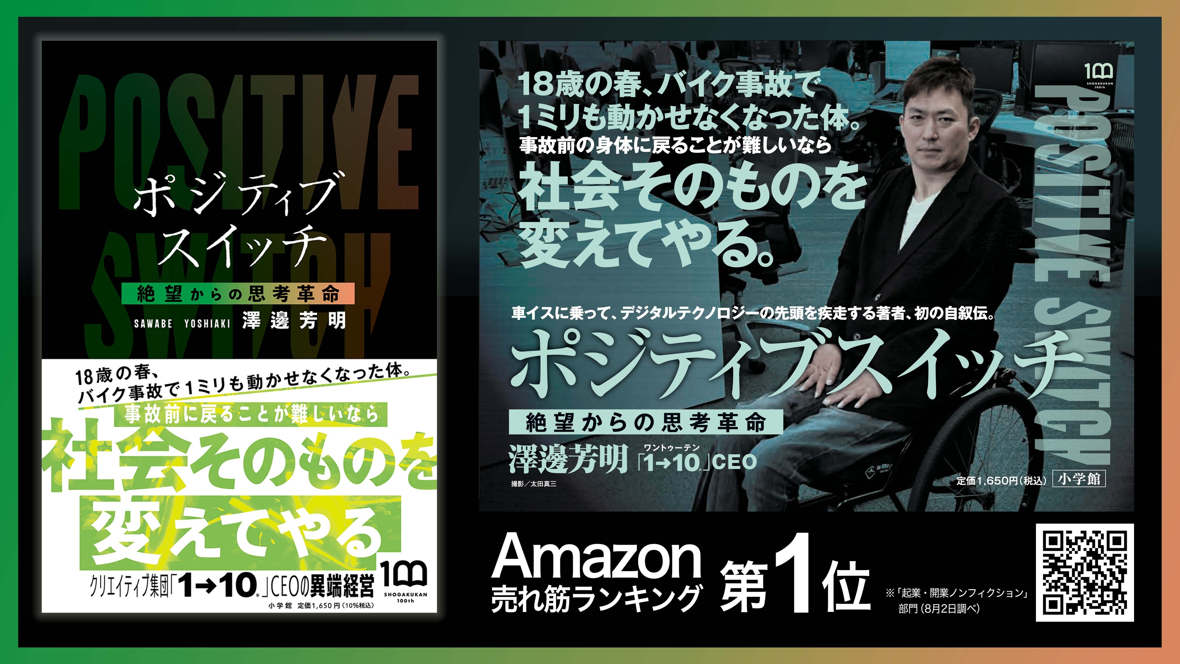 聞き手は、ワントゥーテンCEO澤邊芳明。18歳の時にバイク事故によって頸髄を損傷。首から下が動かない障がい者でありながら、AIやXRなどの最先端テクノロジーを駆使するクリエイティブ集団「ワントゥーテン」を率いる経営者です。