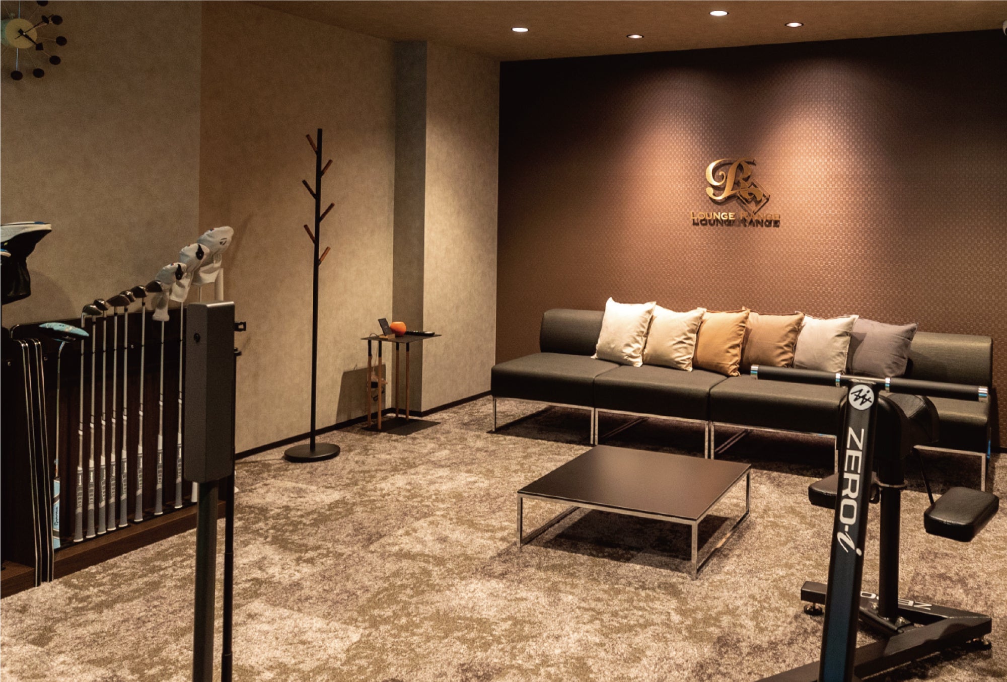 ゴルフレンジの後ろには、複数人でゆったりと寛げるソファをご用意。