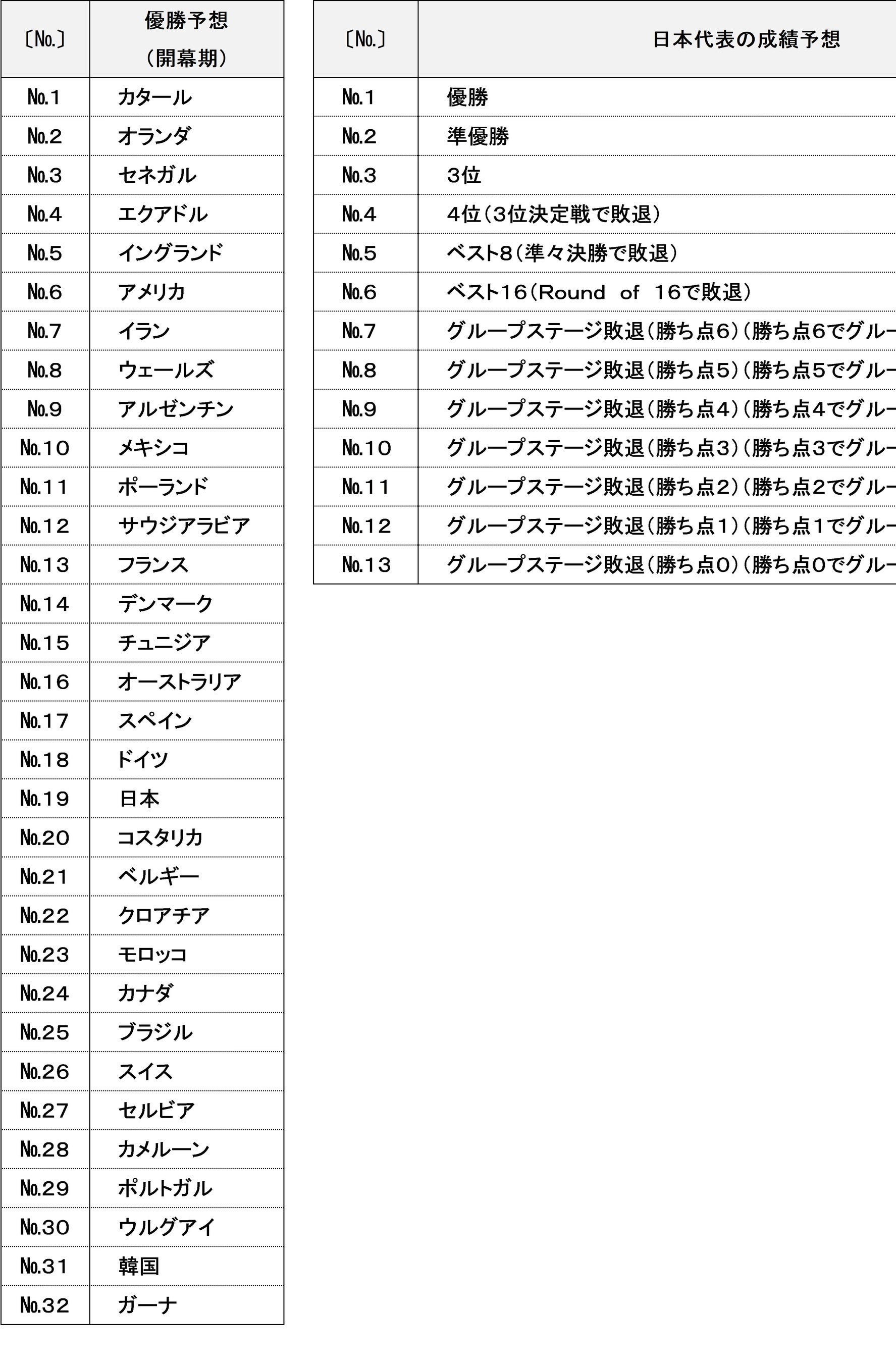 ・W杯 2022 日本代表の成績予想