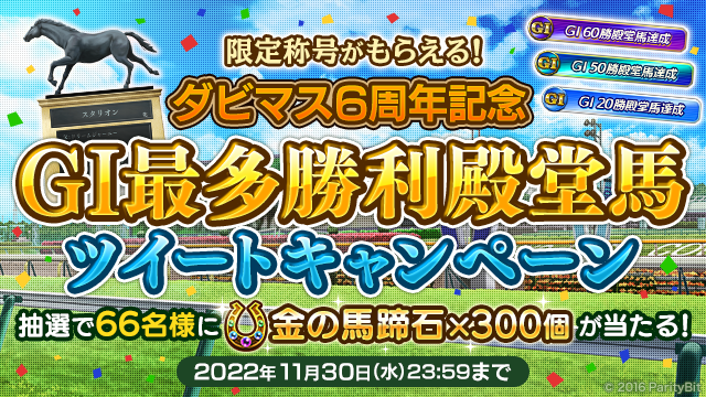 ・ダビマス6周年記念 GI最多勝利殿堂馬ツイートキャンペーンページ