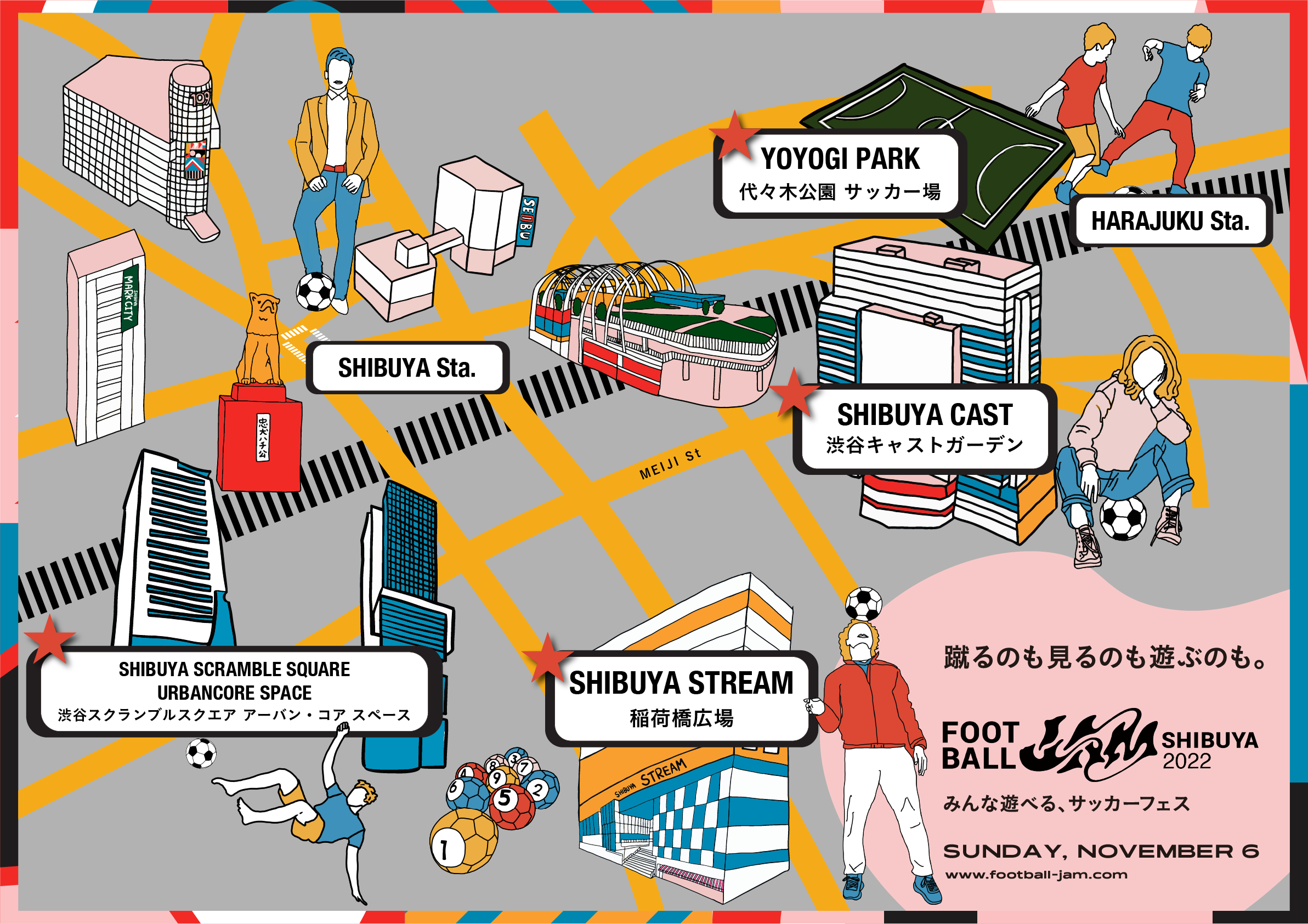 SHIBUYA CITY FCを運営する株式会社PLAYNEWは、11月6日(日)にサッカーフェス「FOOTBALL JAM 2022」を渋谷駅前各所で開催する。