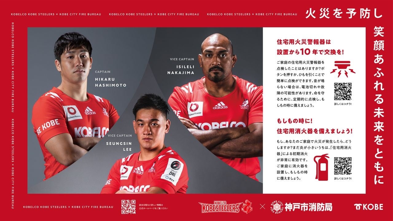 ホストタウンである神戸市と事業連携協定を締結するコベルコ神戸スティーラーズは、神戸市消防局と連携し、11月9日~15日まで実施する「秋の火災予防運動」を相互PRします。