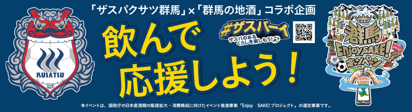 ザスパクサツ群馬では「ザスパの恩返しプロジェクト」と称し、群馬県全域を盛り上げるための企画を実施しております。新型コロナウイルス感染症の影響で、外食産業の落ち込みと共に日本酒の消費も大きく減退してしまいました。群馬県酒造協同組合では、群馬県産の日本酒の魅力を県内外に発信しようと、「群馬EnjoySAKE!キャンペーン」を企画。今回、Jリーグの公式戦、オンラインイベントへの選手参加で弊クラブも群馬県の日本酒業界盛り上げに協力させていただくことになりました。クラブサポーターをはじめ、多くの群馬県民が県産日本酒の魅力を知っていただき、各蔵元の商品を楽しんでいただけると嬉しいです。
