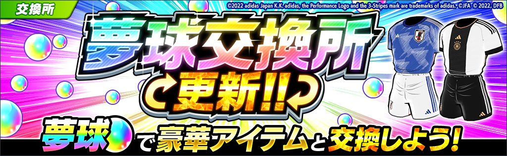 サッカー日本代表など世界各国のサッカー代表公式ユニフォームが夢球交換所に登場します。