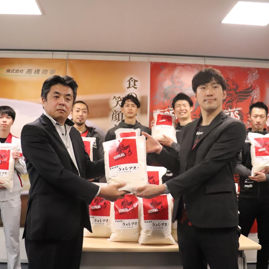 【栄養価の高いお米でチームをサポート。オフィシャルパートナー高橋商事様に「旭川産胚芽米」1.2トンを贈呈いただきました!(2022年3月24日)】https://voreas.co.jp/7097